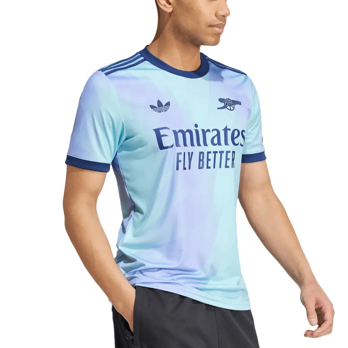 Official Arsenal Third soccer jersey for 2024/2025 season in Premier League and european competitions. Designed by technical sponsor Adidas for the Gunners of London, this beautiful jersey features the iconic Adidas Trefoil style, with a vintage looking AFC crest, old style Adidas trefoil and sponsor.