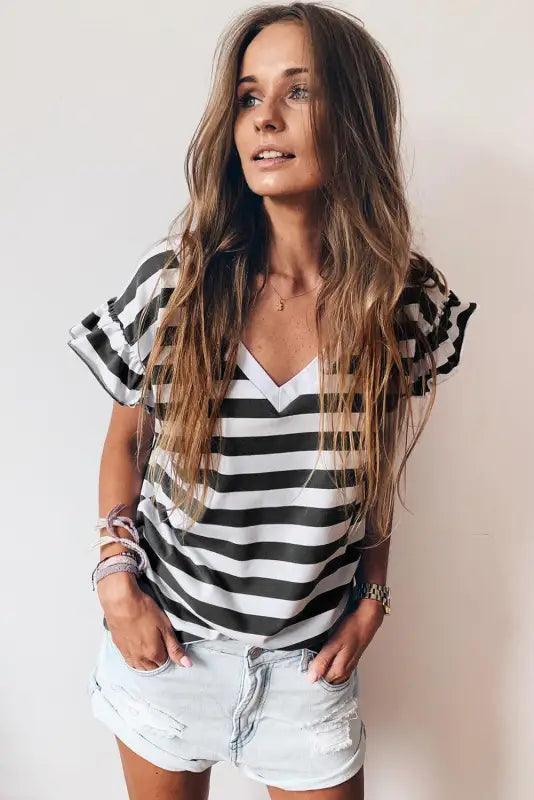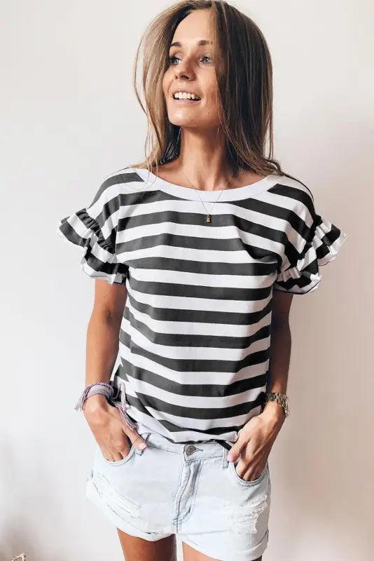 The ruffled sleeves design makes this t-shirt gentle and feminine