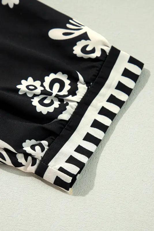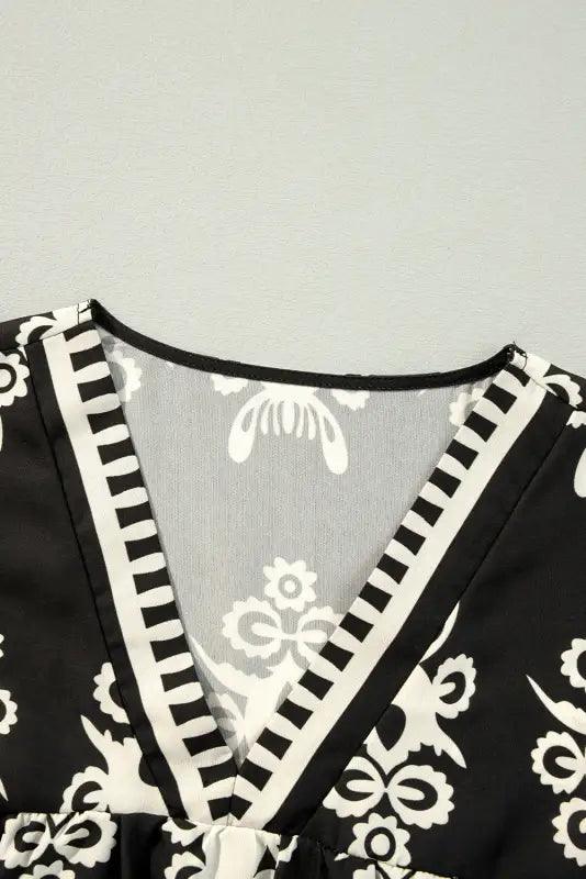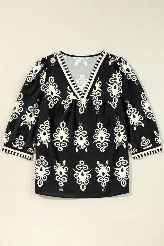 Unleash your inner free-spirited fashionista with our Boho Chic Geometric Blouse in Black. This stylish top features a fun geometric design, perfect for adding a pop of pattern to any outfit. The lightweight fabric and relaxed fit ensure comfort while making a statement.