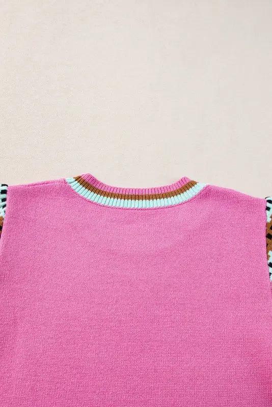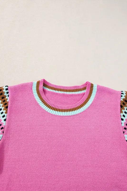 - Bright Pink Cap Sleeves Crewneck Sweater