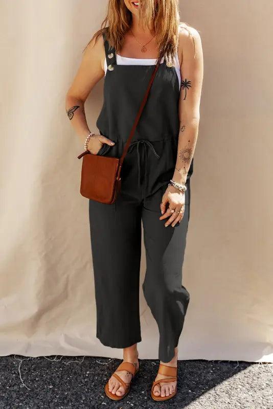 Transform your wardrobe with our Buttoned Straps Cropped Overall! These overalls feature stylish buttoned straps and a cropped length, perfect for a chic and versatile look. Pair with your favorite top and shoes to create multiple outfit options. Elevate your style with this must-have piece!