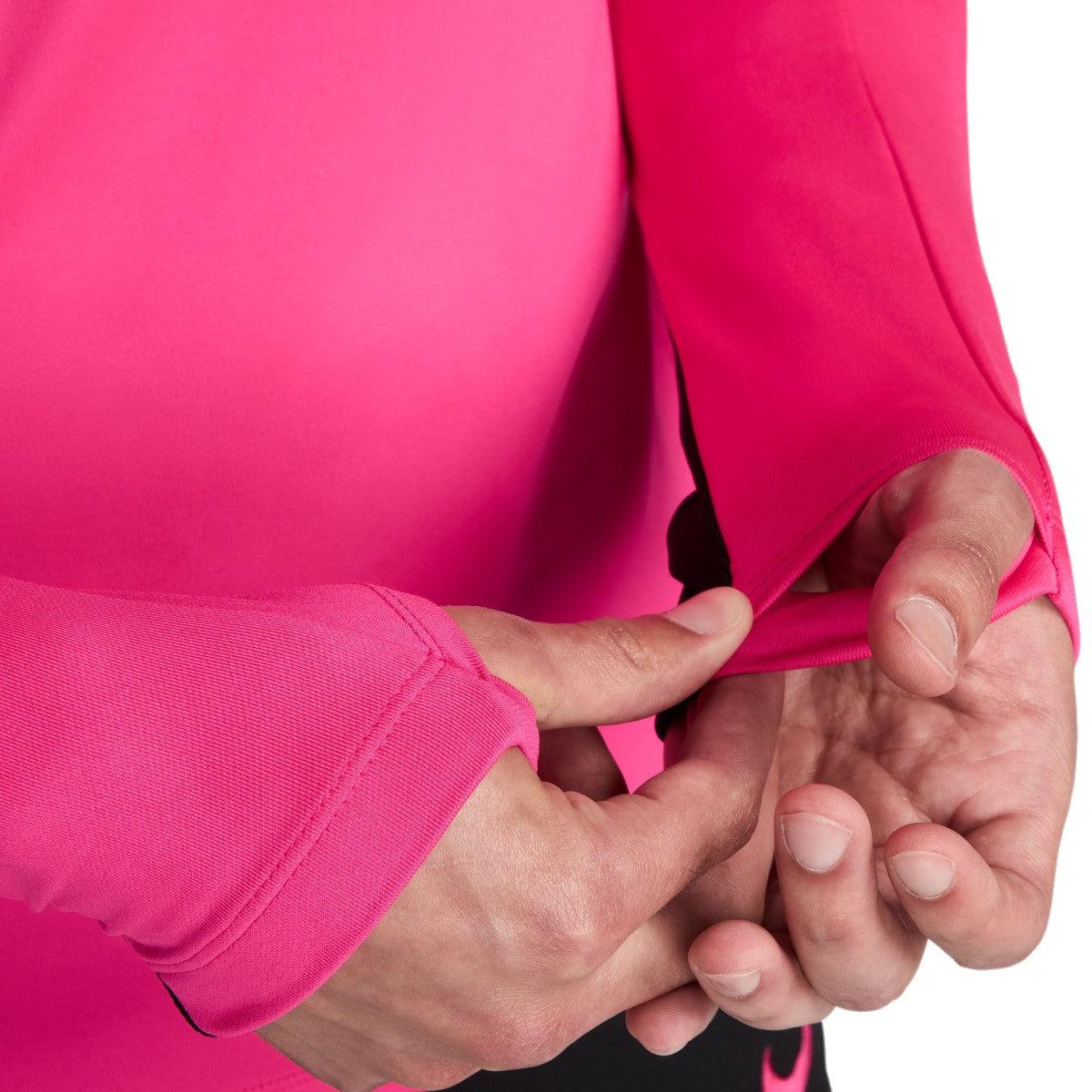 Official Chelsea FC EU training technical lightweight sweatshirt for 2024/2025 international soccer season in UEFA Conference League, exclusively designed by Nike. Fluo pink/black style adorned with the iconic CFC logo and Nike swoosh, this top is perfect for jogging, hitting the gym, and intense training sessions.
