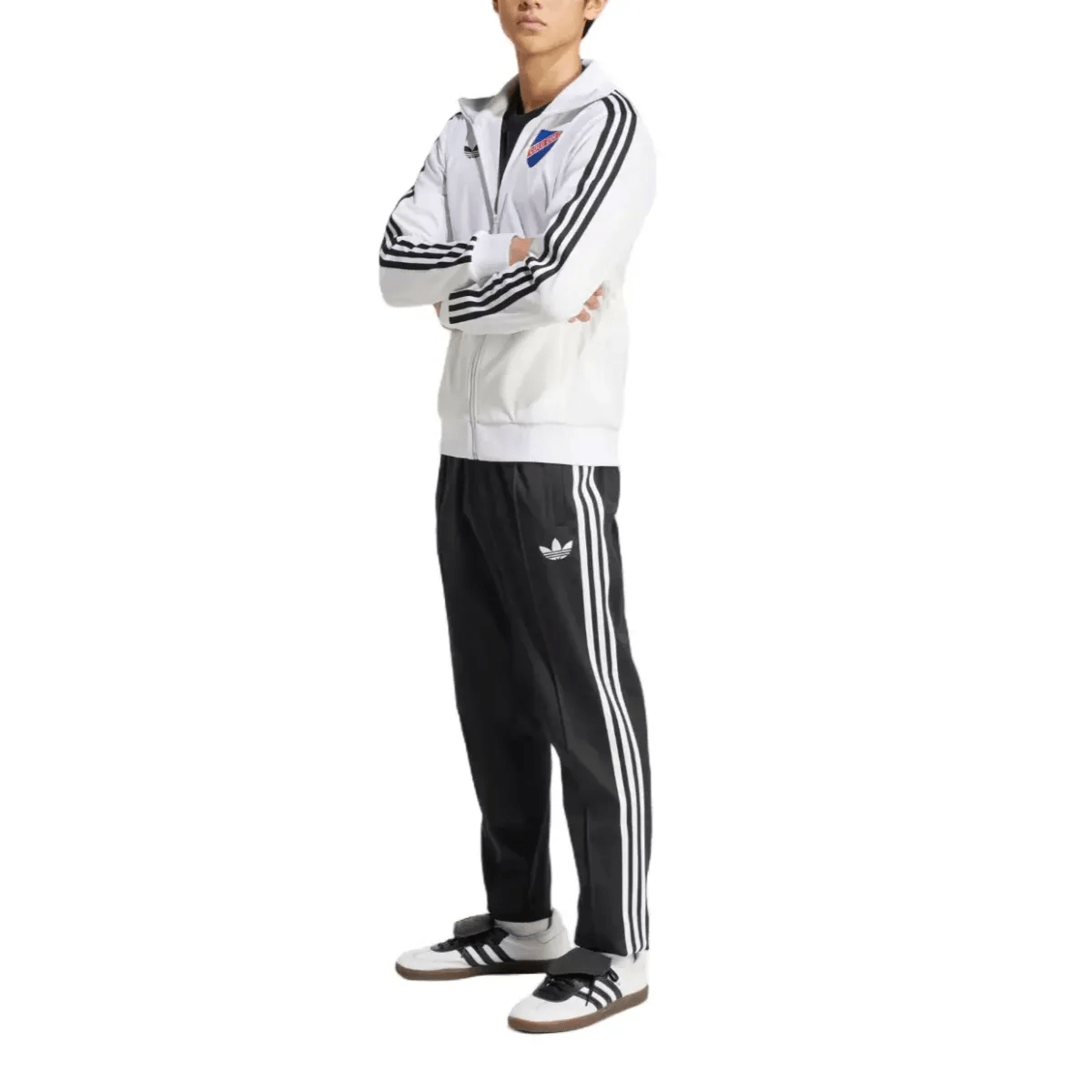 Authentic Colo Colo casual presentation track set, Adidas Originals version, for 2025/2026 chilean season, designed by technical sponsor Adidas. This stunning tracksuit celebrates the 100th Anniversary of the club. A vintage looking set which features white full zip track top and matching black pants (both in 52% cotton and 48% recycled polyester).