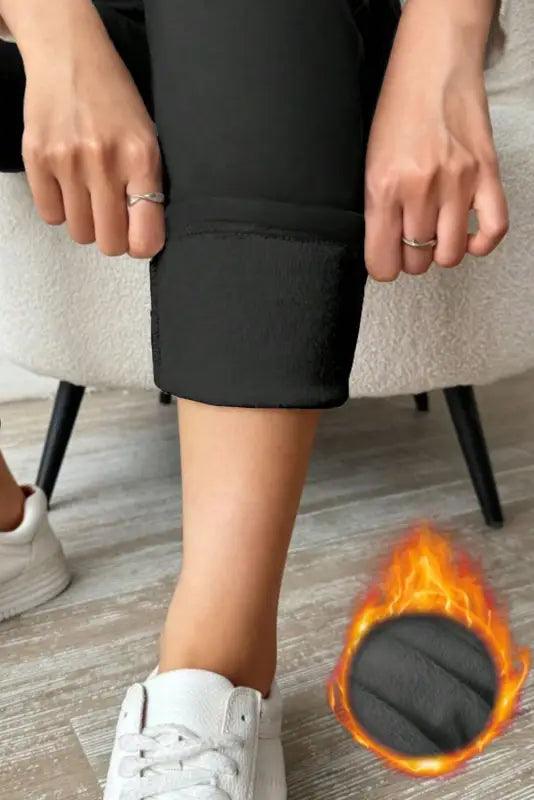 - Stay cozy in style with these Thermal Lined Drawstring High Waist Leggings.