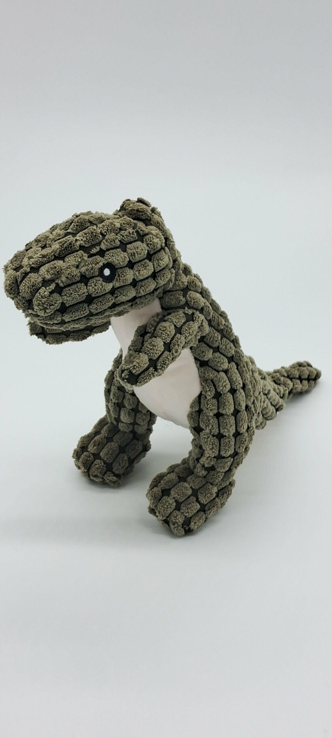 Give your dogs a huggable friend with our adorable Dino the Dinosaur plush toy. This super soft and cuddly toy is perfect for snuggling and makes a great companion for playtime. With its cute and colorful design with squeaker inside, Dino the Dinosaur is sure to become your dog favorite toy.