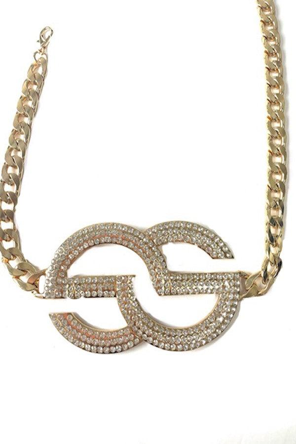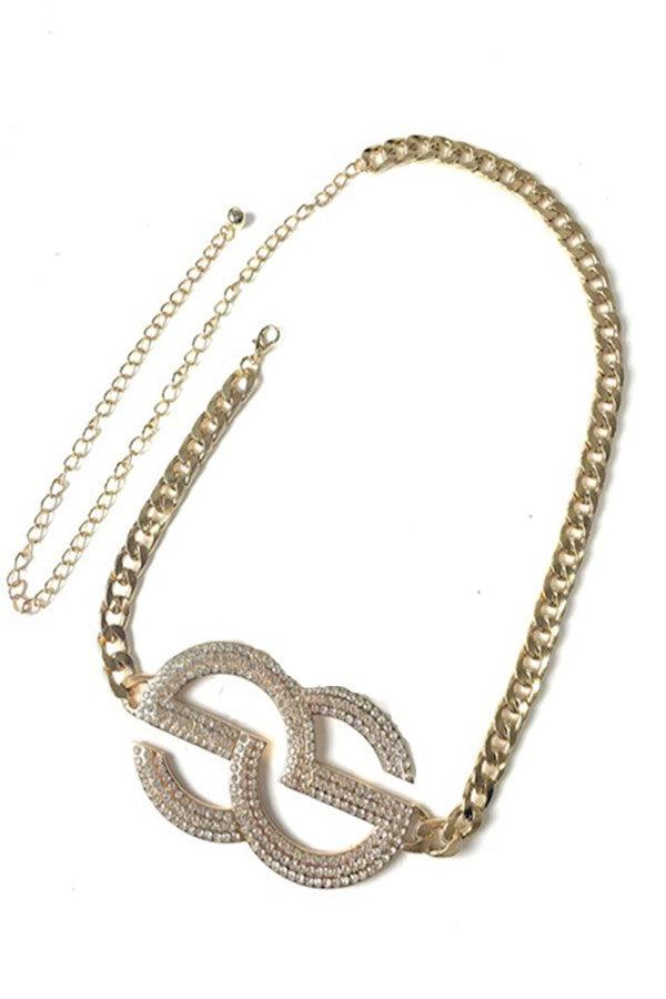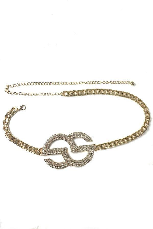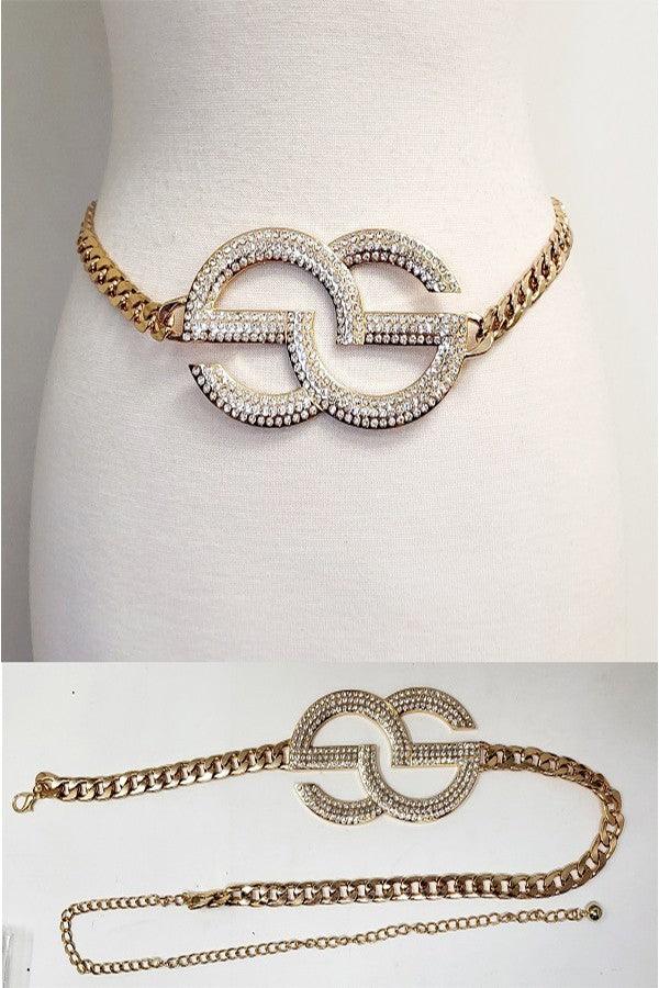 DOUBLE ROUND RHINESTONE BUCKLE CHAIN BELT