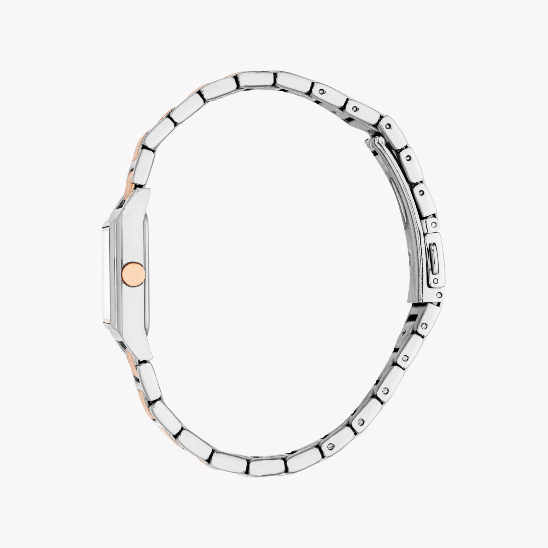 Dual-Tone Aesthetic: The eye-catching combination of Silver & Rose Gold in both the case and the band enhances your look, making it ideal for both casual outings and formal events.