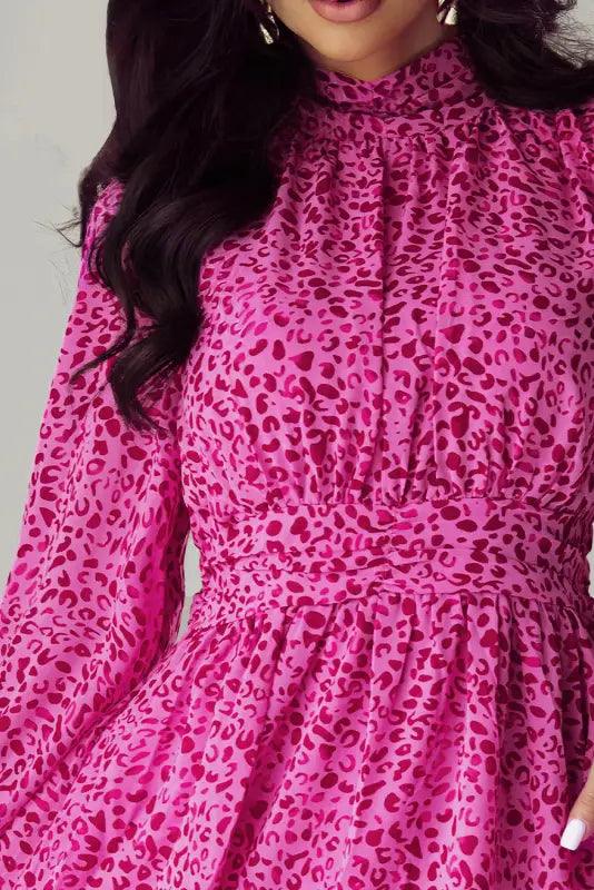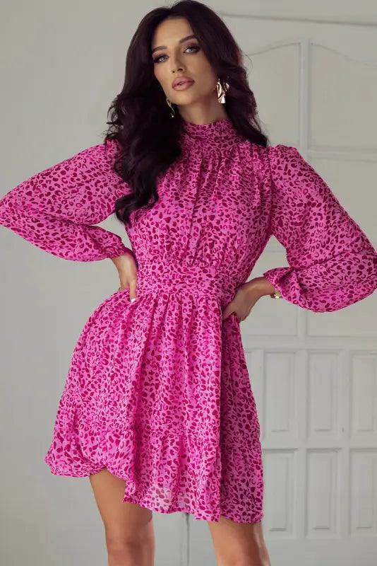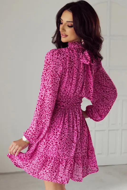 Effortlessly exude feline finesse in our Feline Flair Ruffle Dress. This luxurious dress features delicate ruffles and a flattering fit for a sophisticated and exclusive look. Dress to impress with this elegant and timeless addition to your wardrobe.