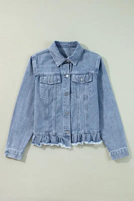 The Frayed Fantasy Denim Jacket is a must-have addition to any wardrobe. It features a stylish frayed design that adds a touch of edge to any outfit. Made from high-quality denim, this jacket is durable and comfortable. Perfect for adding a unique and trendy touch to your look.