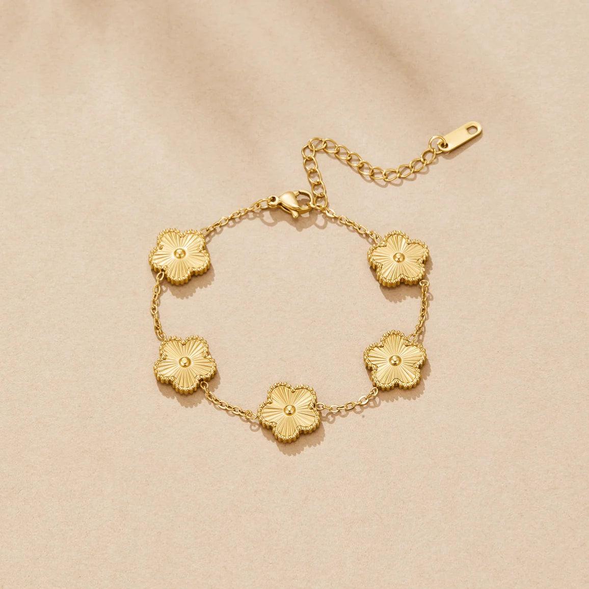 Golden Clover Flower Bracelet. pairs effortlessly with both casual and formal outfits, adding a hint of sparkle to your everyday look. It’s not just an accessory — it’s a charm of luck, beauty, and confidence that you can wear anywhere.