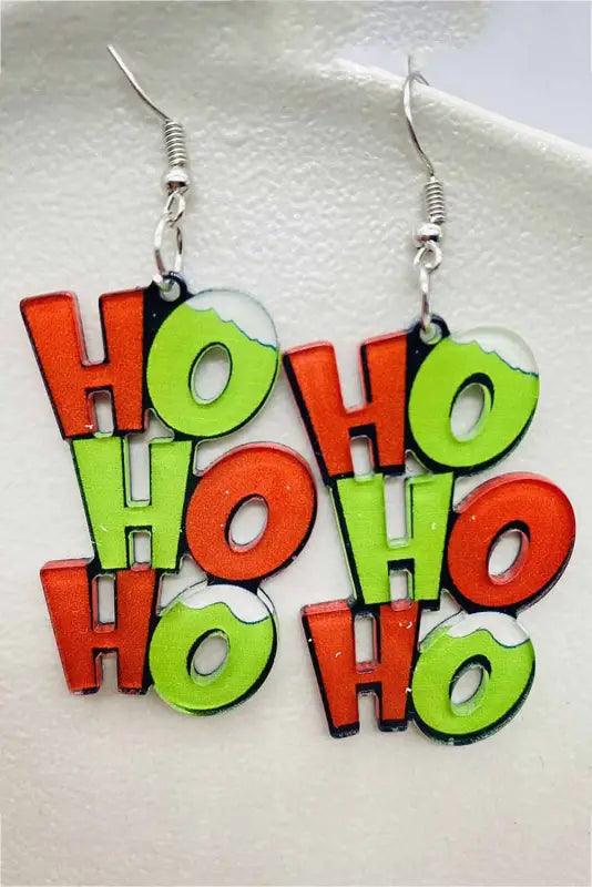 Get ready to spread some cheer this holiday season with our HO-HO-HO Dangle Christmas Earrings! Crafted with festive red and green colors, these earrings will add a playful touch to any outfit. Perfect for Christmas parties or a fun addition to your everyday wardrobe. Ho, ho, ho your way through the holidays with these earrings.