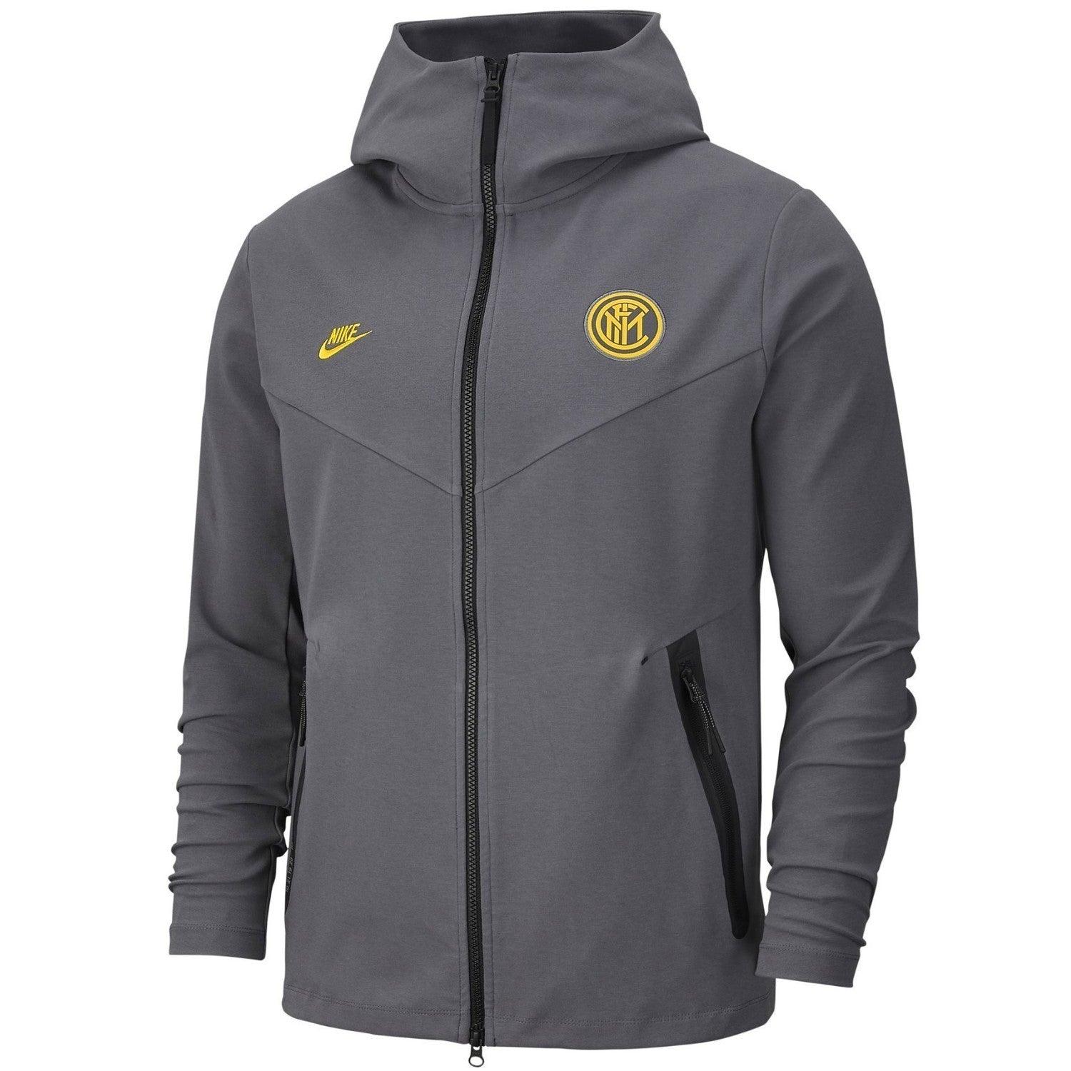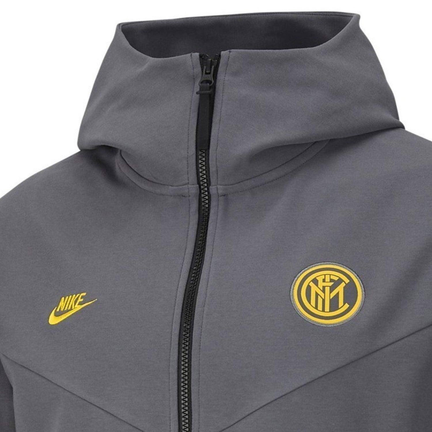 Authentic Inter Milan Tech pro presentation fleece jacket designed by Nike for season 19/20 in Serie A and Uefa Champions League. Made of 55% cotton (plus rayon and elastane), this Tech Pack style features an elegant grey pattern with yellow details. Wear with pride everywhere you go and show your support for the Internazionale di Milano!