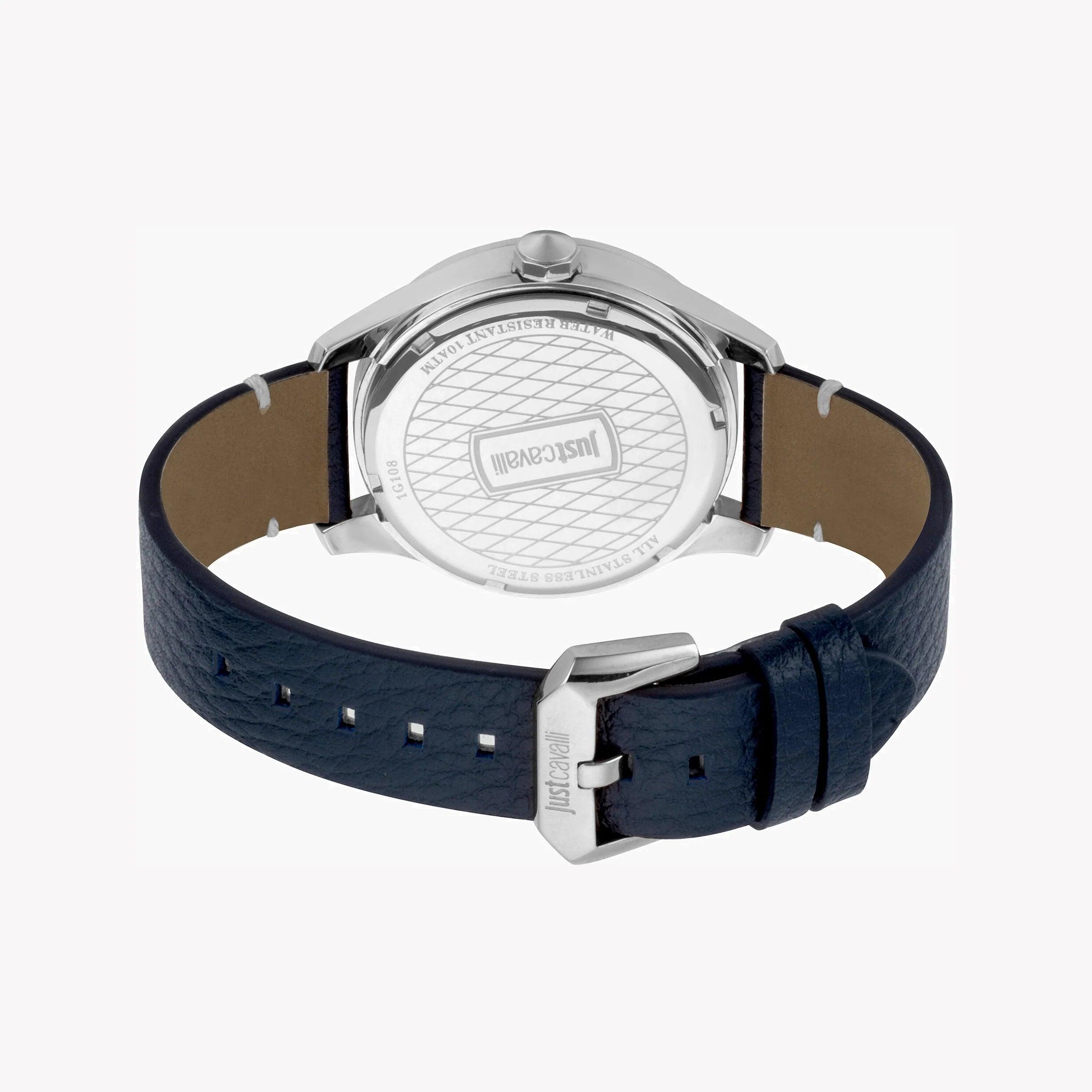 Just Cavalli Men’s Blue Leather Watch, Silver Case | Jc1g108l0015