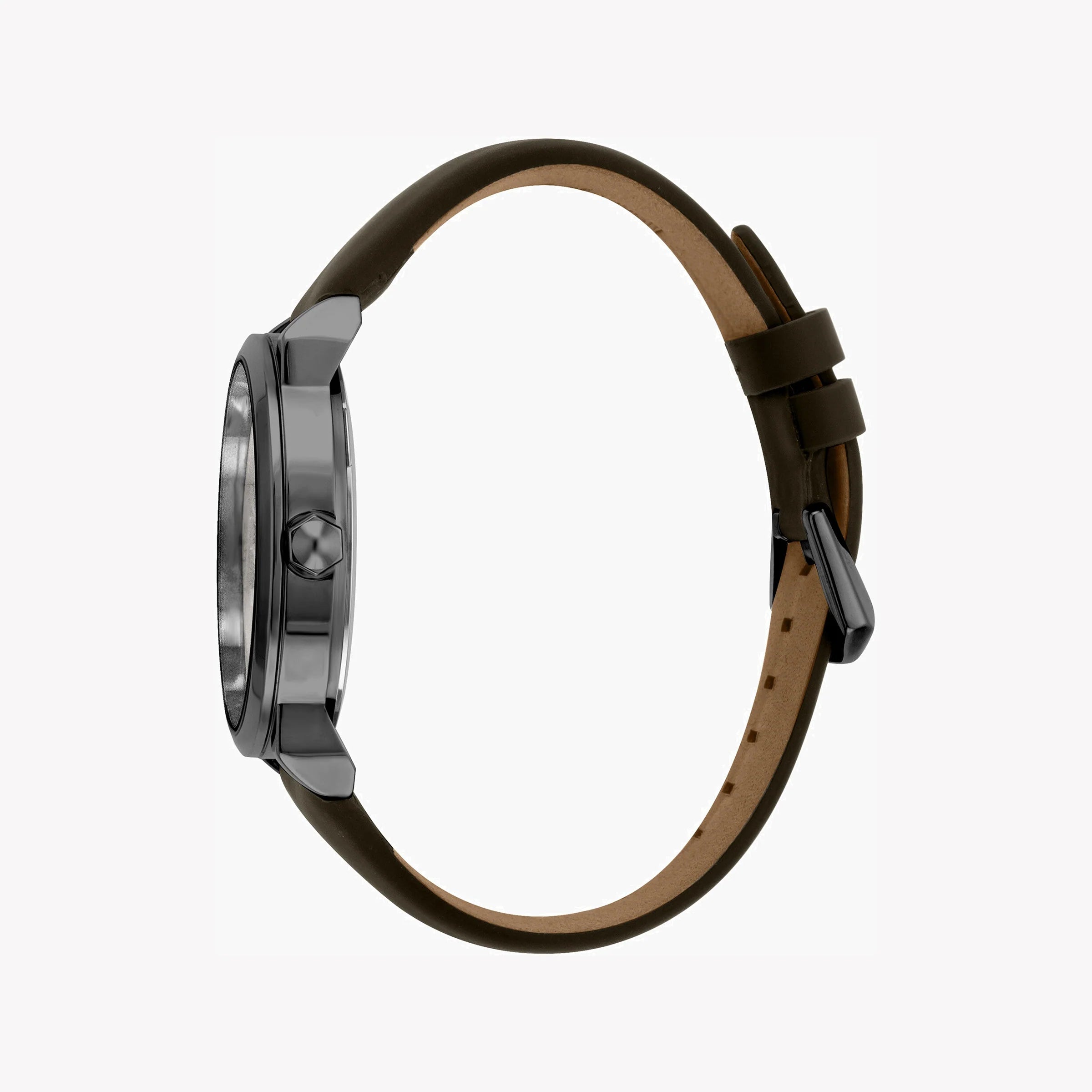 Timeless, sophisticated, elegant. This Just Cavalli Men’s Watch has it all. From the Brown Leather band to the Metal Round Black case of 42 mm diameter and of course the elegant Gray dial, this watch is the perfect representation of the ultimate sophistication.
