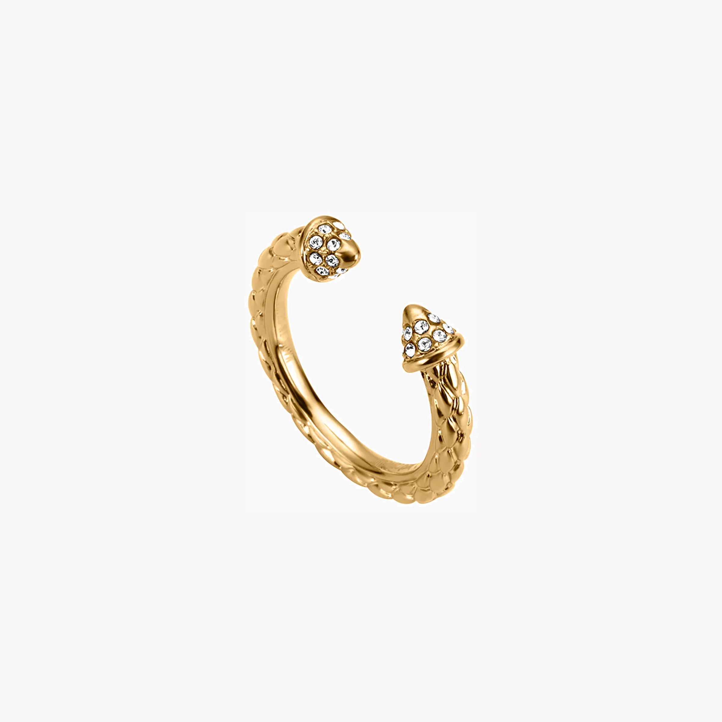 Add a touch of bold style to your look Just Cavalli Gold Brass Ring. The striking unique design makes it the perfect accessory for any occasion. Is it a party? Is it a wedding? Is it just lunch with friends? This ring will have you dressed to the nines, no matter what.