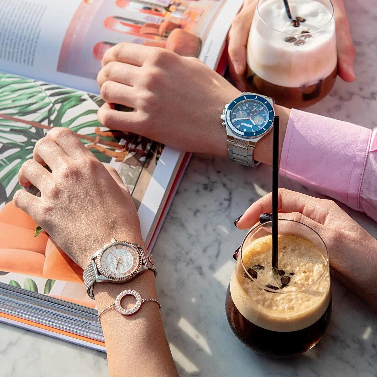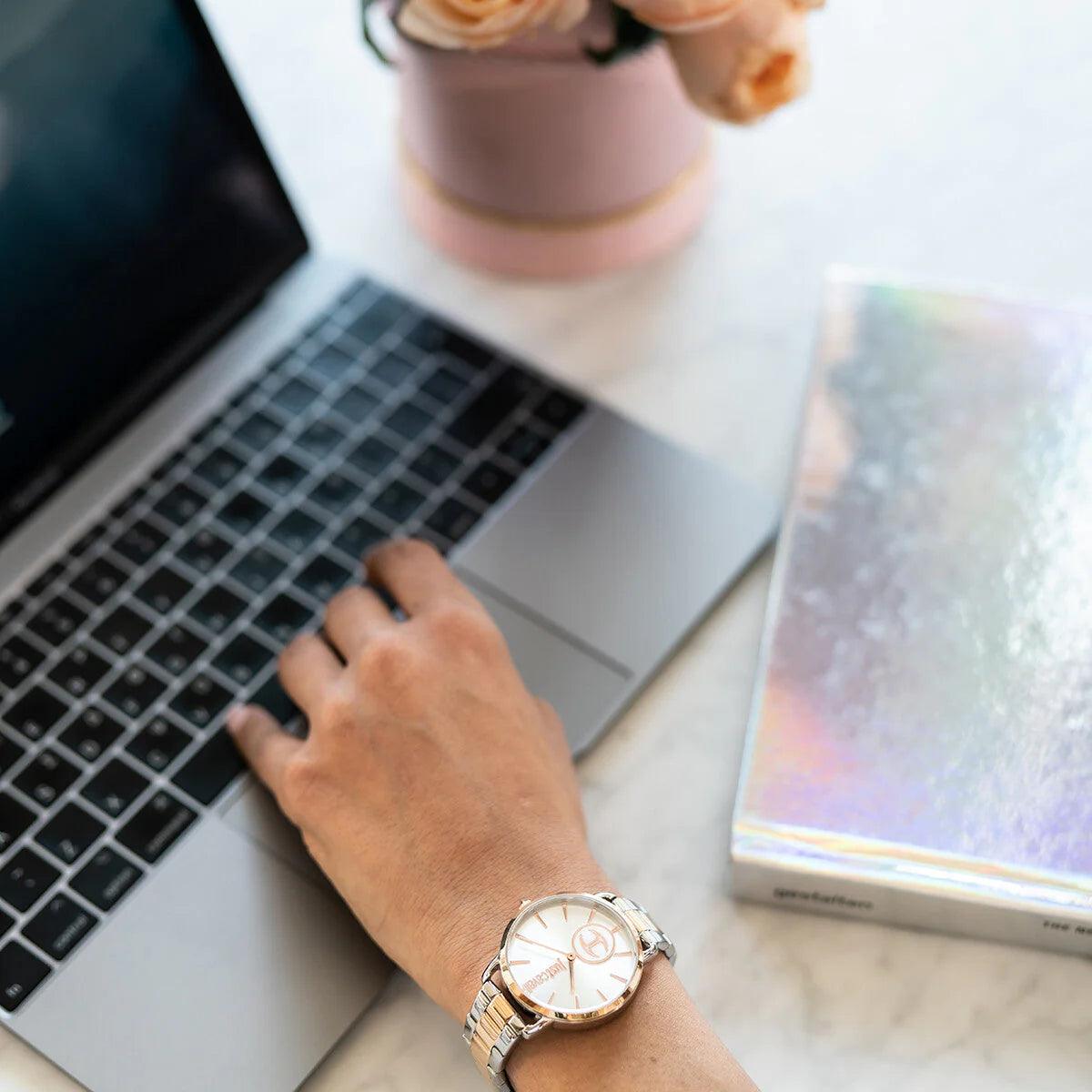 Timeless, sophisticated, elegant. This Just Cavalli Women’s Watch has it all. From the Silver & Gold Stainless Steel band to the Stainless Steel Round Silver case of 36 mm diameter and of course the elegant Silver dial, this watch is the perfect representation of the ultimate sophistication.