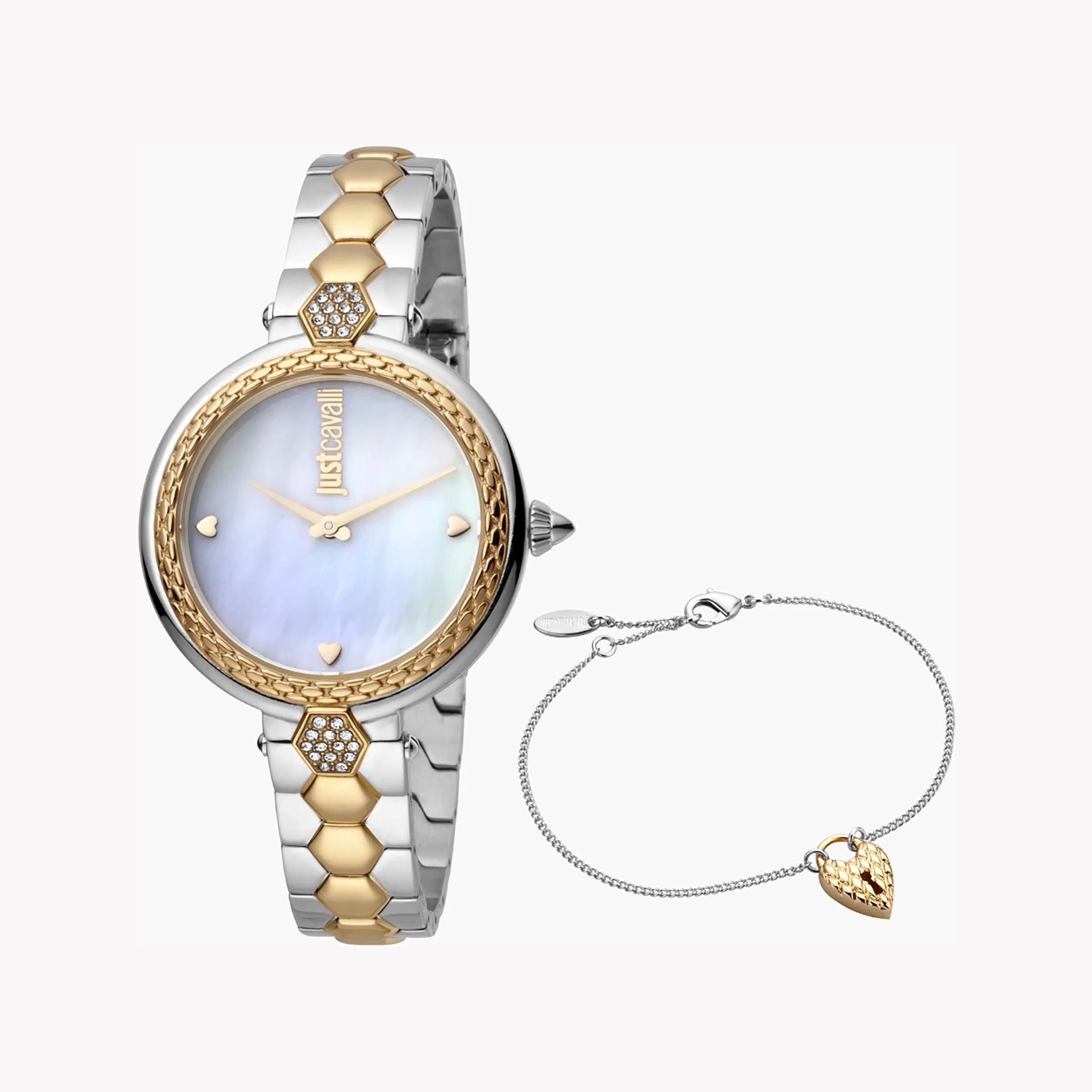 Just Cavalli Women’s Silver & Gold Watch, White Dial | Jc1l128m0595