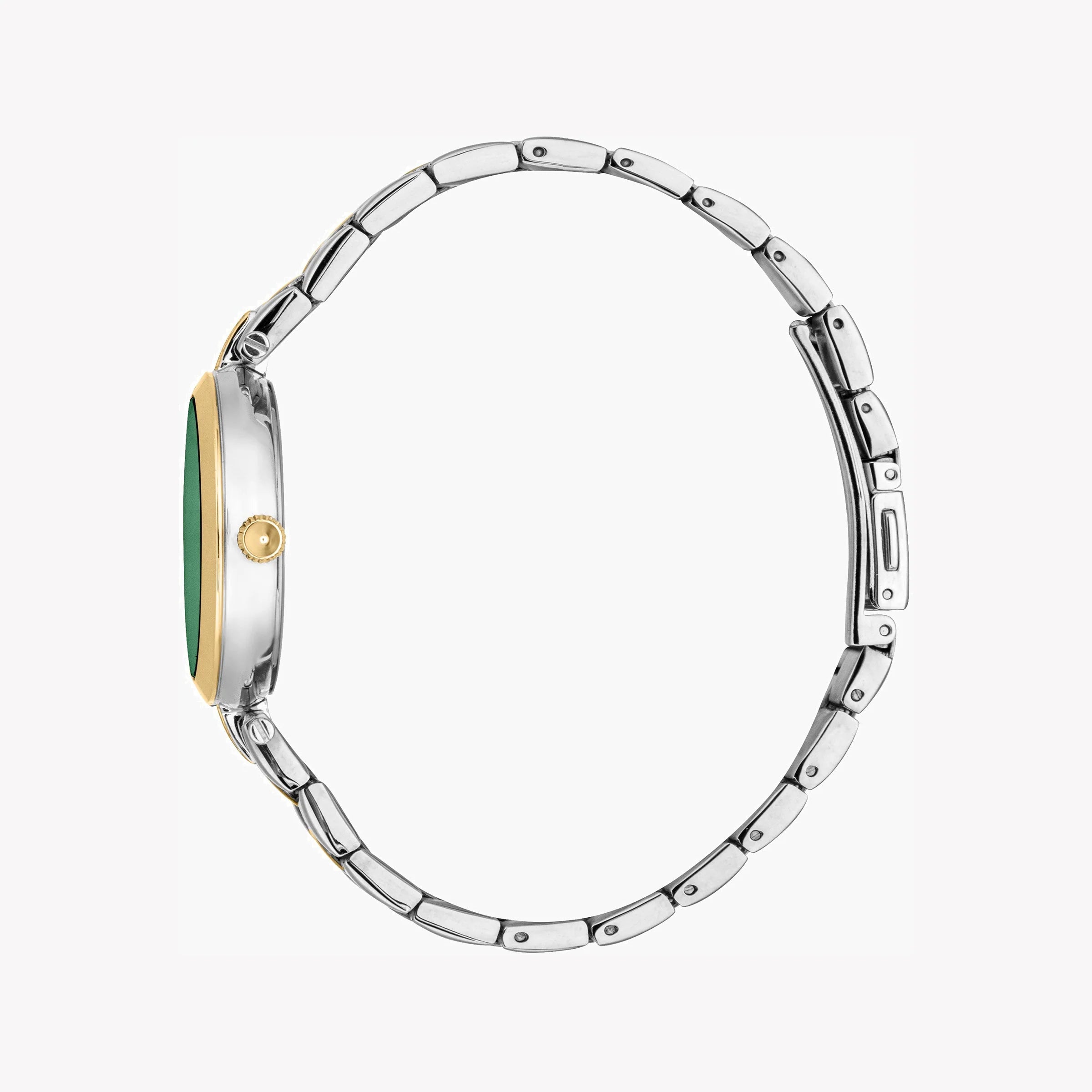 Timeless, sophisticated, elegant. This Just Cavalli Women’s Watch has it all. From the Two Tone Silver & Gold Stainless Steel Band to the Stainless Steel Round Two Tone Silver & Gold Case of 32 mm diameter and of course the elegant Green Dial, this watch is the perfect representation of the ultimate sophistication.