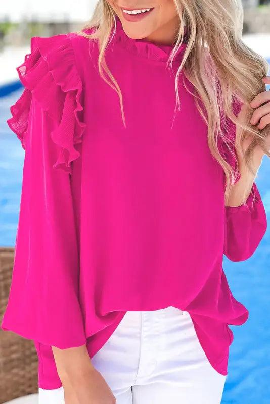 Elegant Keyhole-Back Blouse | Pleated Ruffle Trim | Fashion Forward