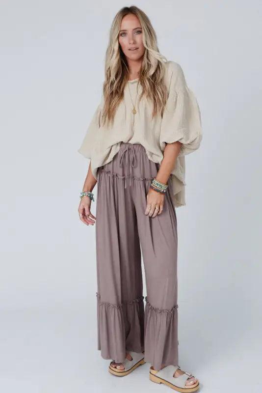 - Featuring frilled details, the casual pants add a feminine and playful touch