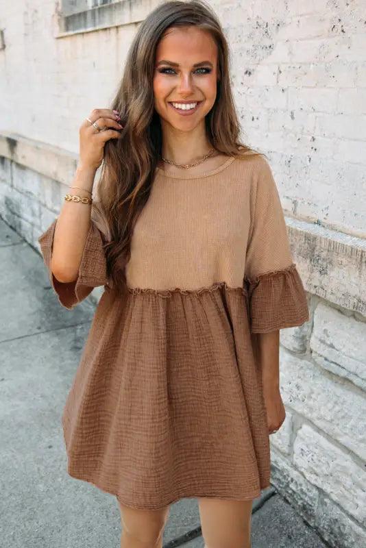 Mini Shirt Dress – Rose Stripe Short Sleeve