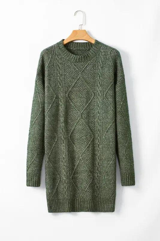 Cozy up in our Loose Fit Jumper Dress! Featuring a drop shoulder design and cable knit detailing, this dress combines comfort and style. Available in mist green.