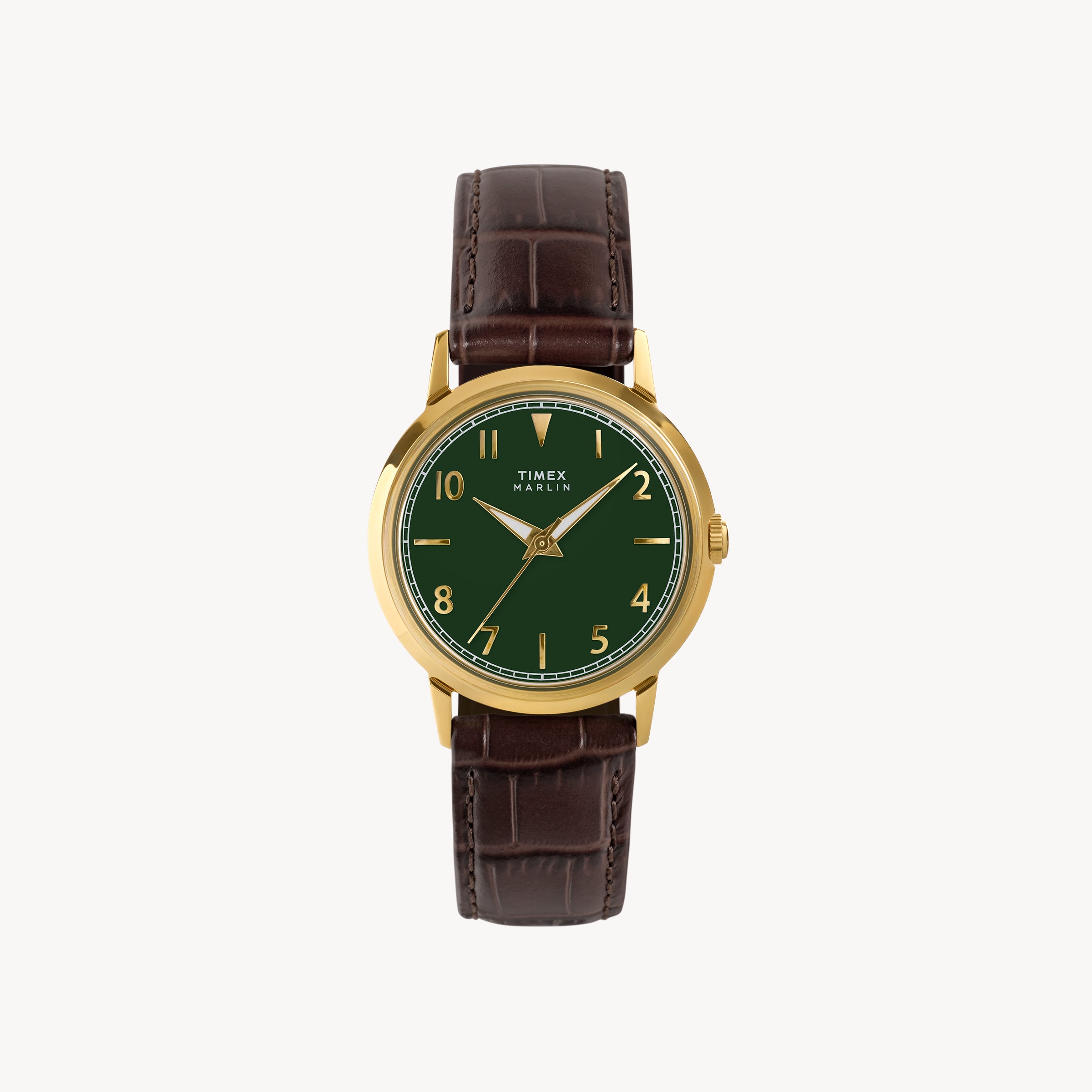 Marlin 34mm Gold Tone Case Brown Strap Green Dial Watch | TW2Y37800