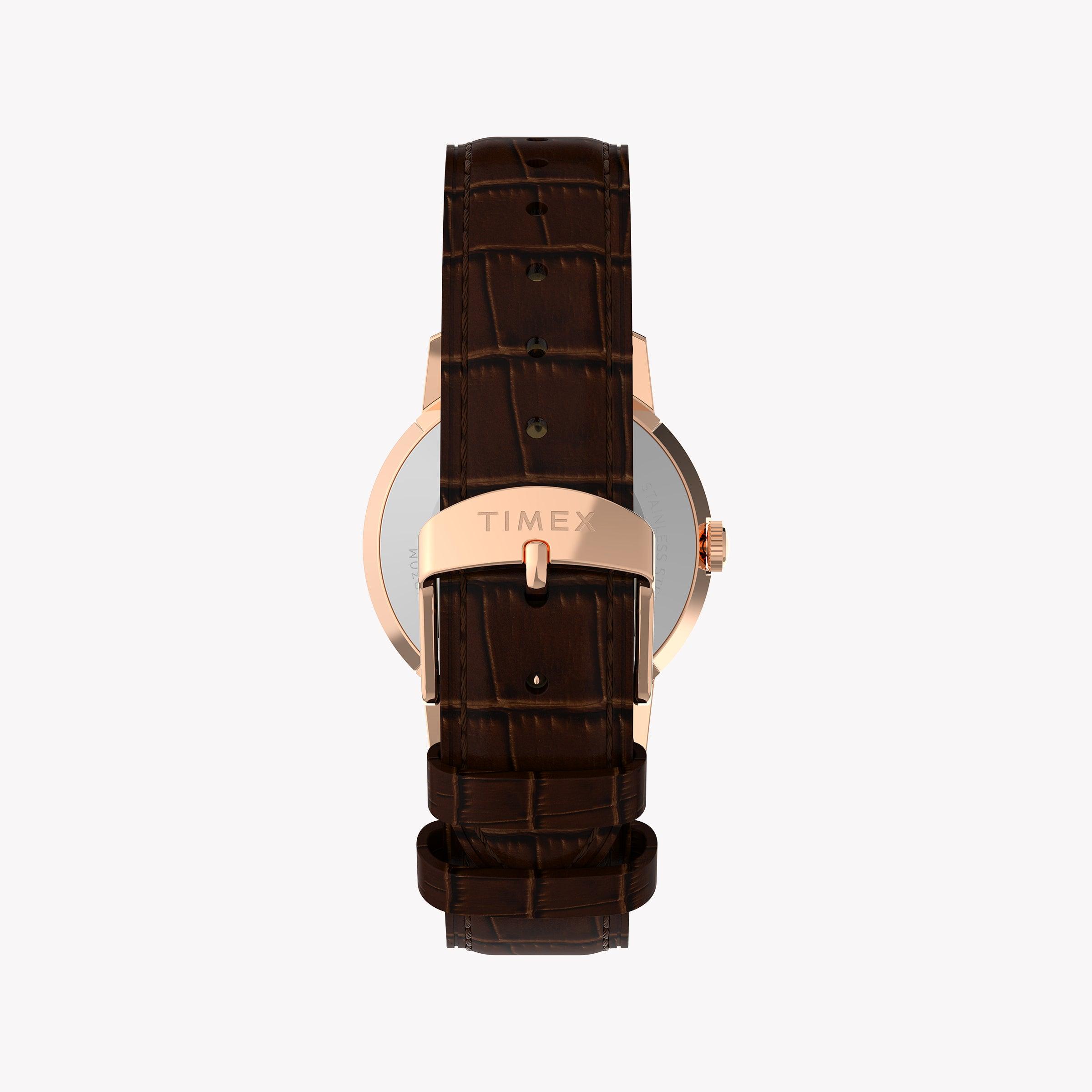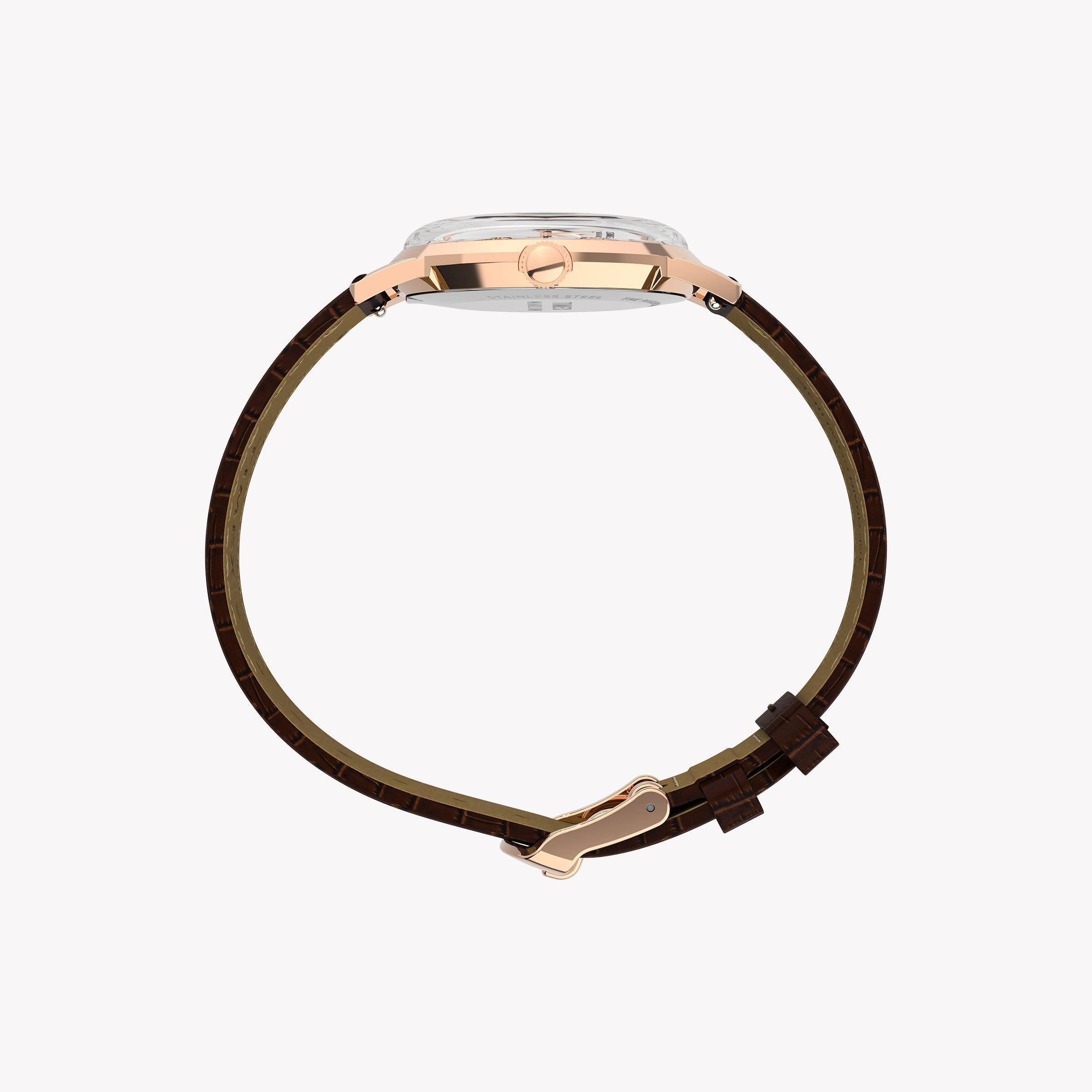 Marlin 34mm Rose Gold Tone Case Brown Strap Silver Dial TW2Y37700
