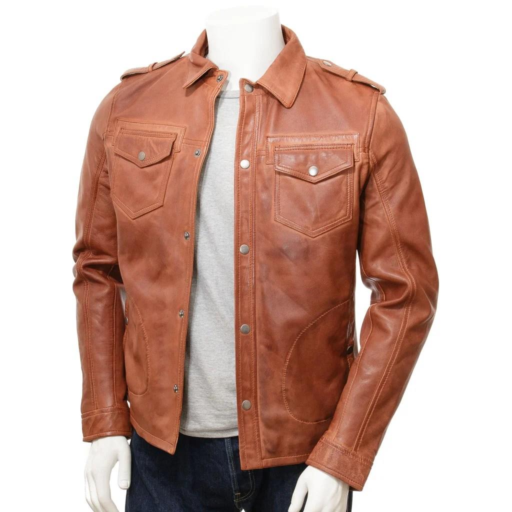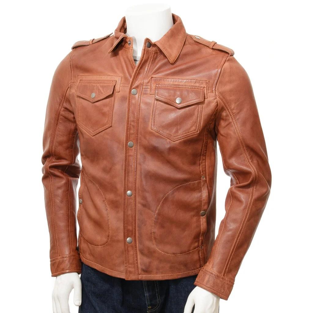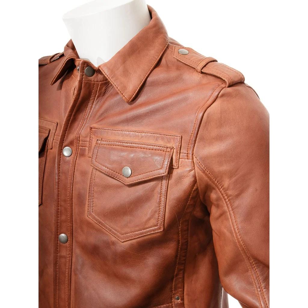 MEN BROWN LEATHER SHIRT JACKET NORWICH