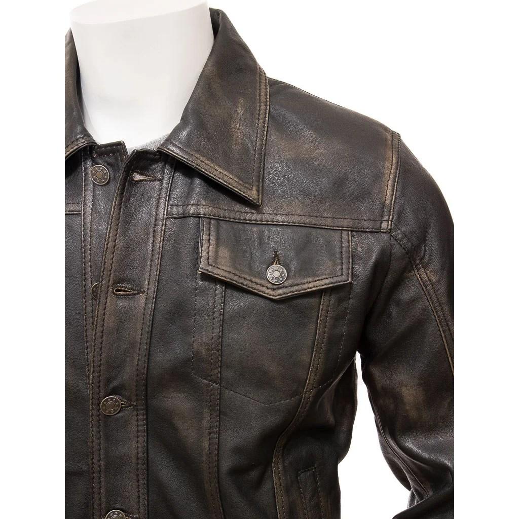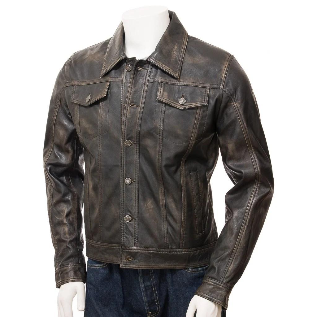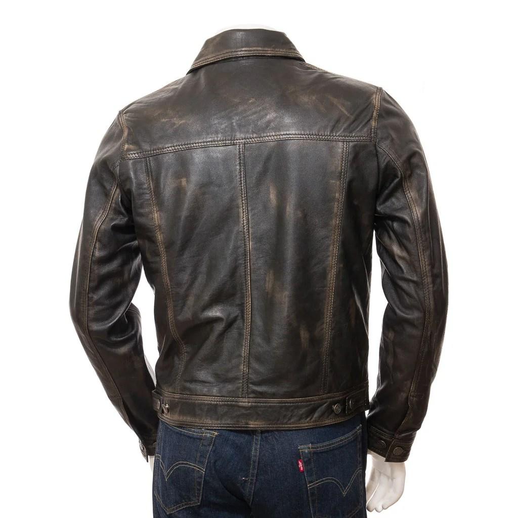 MEN LEATHER TRUCKER JACKET IN VINTAGE PIKE