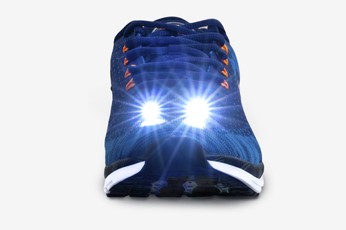 The Men’s High Beam Night Runner shoes have a built-in light system for visibility and safety while you run. The HB3000® running light system is completely hidden in a running shoe that is light and breathable, but with enough cushioning support to wear all day. The light system is remote-controlled and has independent front and rear lights to keep you seen and safe while walking and running.