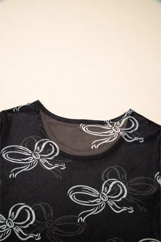 Stay stylish and comfortable in our Midnight Bow Mesh Tee. The perfect addition to any outfit, this tee features a unique bow design and breathable mesh fabric. Look effortlessly cool day or night!