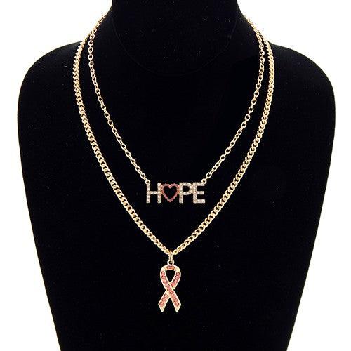 PINK RIBBON AND HOP TWO LAYERED NECKLACE