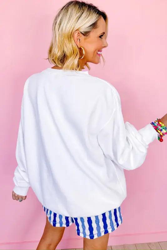 Show off your patriotic spirit in this Relaxed American Flag Print Sweatshirt. With a relaxed fit and eye-catching flag print, this sweatshirt is perfect for any casual outing. Stay comfy and stylish while proudly displaying your love for the USA.
