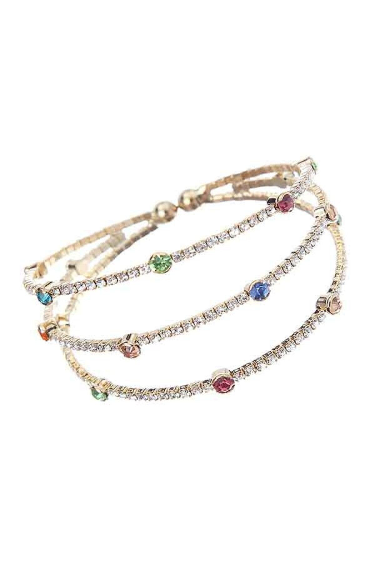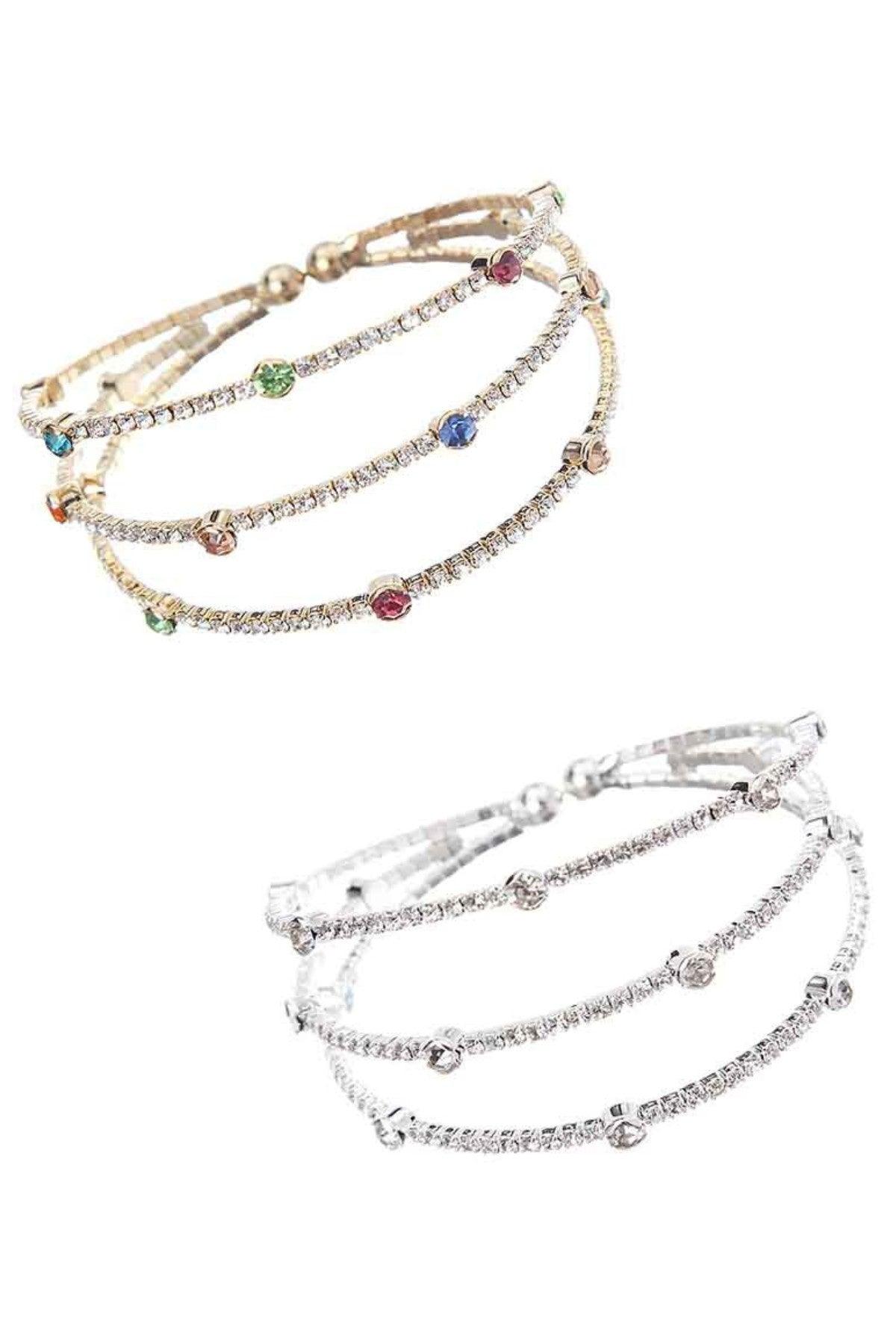 RHINESTONE STATION 3 ROW WIRE BRACELET