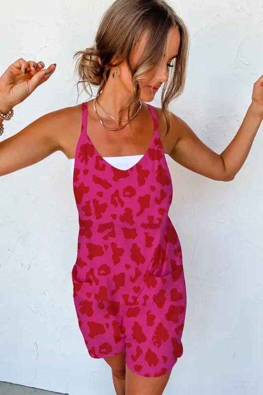 Unleash your wild side with our Rose Red Leopard Sleeveless Romper! Featuring a bold leopard print and a flattering sleeveless design, this romper is perfect for any adventure. Embrace your inner fierceness and make a statement while staying cool and comfortable. Dare to stand out in this must-have piece.