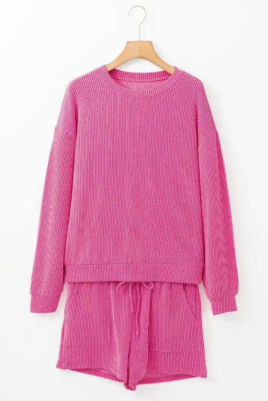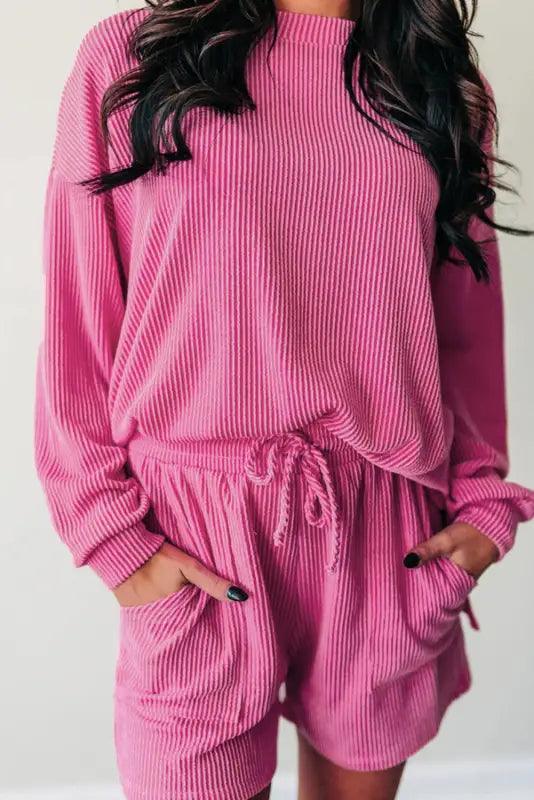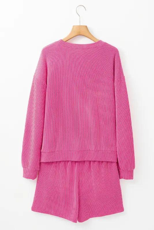 Relax in style and comfort with our Rosy Corded Lounge Set. Made with soft, corded fabric, this set is perfect for lounging at home or running errands. The rosy color adds a touch of femininity while the corded texture provides a cozy feel. A must-have addition to your lounge wear collection.
