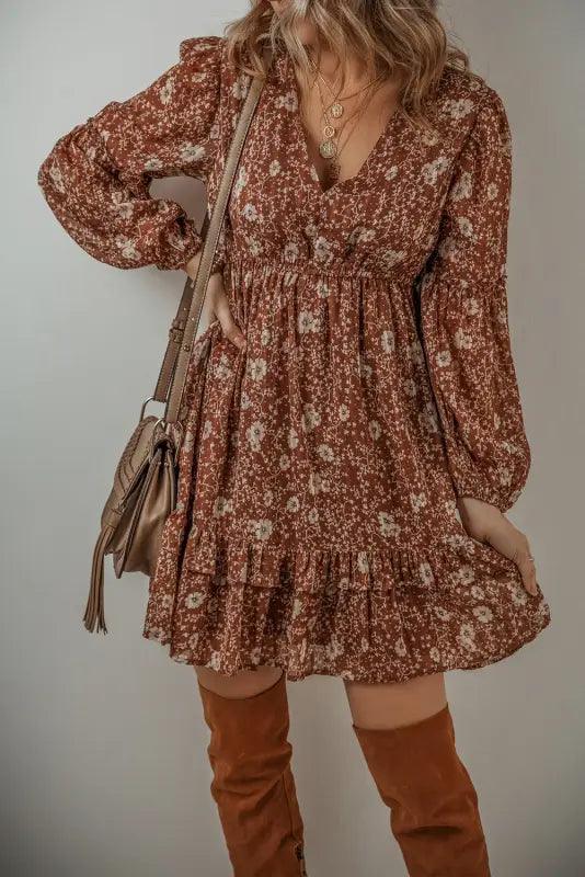 Bring out your inner free spirit with our Ruffle Romance Boho Dress! This flowy and romantic dress features delicate ruffle details and a bohemian-inspired design. Perfect for a day out exploring or a romantic date night, this dress will make you feel beautiful and carefree.