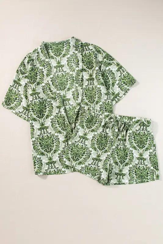 Shirt & Shorts Outfit – Green Vintage Floral Print