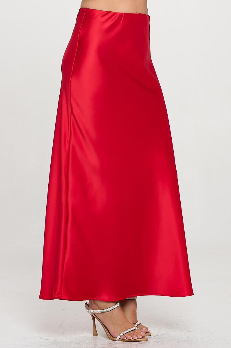 Made in USA Silky Satin Maxi Skirt. Fabric content: 97% Polyester, 3% Spandex. Available in other Colors.