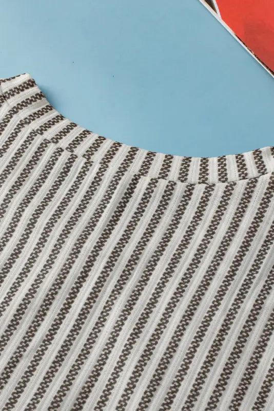 Black Stripe Plus Size High-Waist Bikini – Ruffle Sleeve