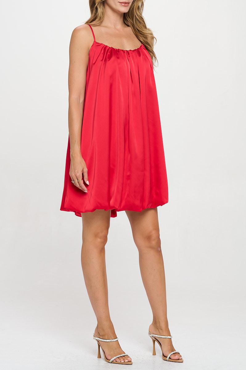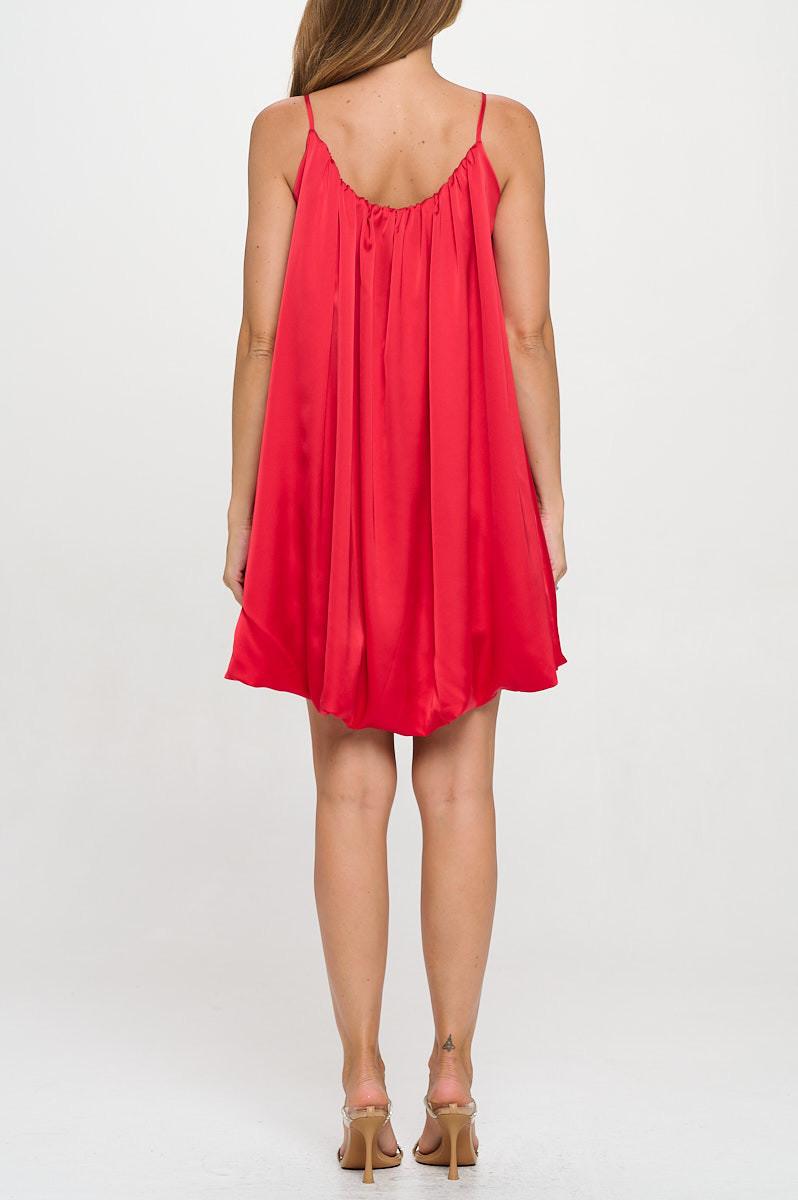 Made in USA Solid Satin Sleeveless Balloon Dress. Available in other Colors. Fabric content: 97% Polyester, 3% Spandex.