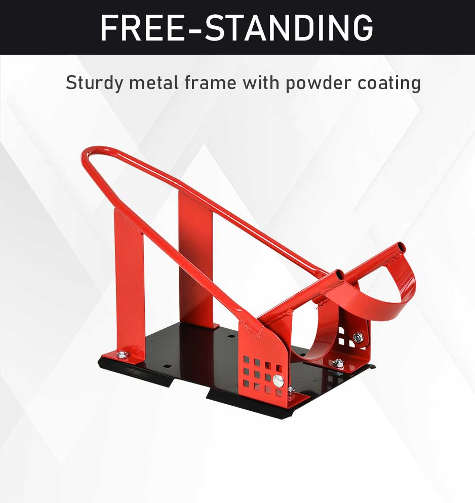 Rubber end caps prevent surface scratches. - FREE-STANDING: This motorbike wheel chock can be mounted to floor and hold front wheel upright for maintenance, changing the oil.