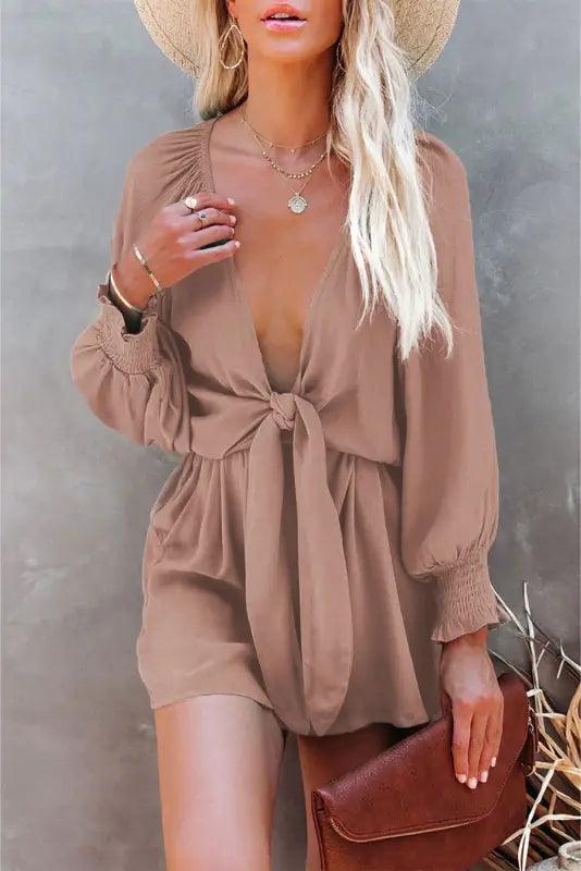 Elevate your wardrobe with our Tie-Knot Puff Sleeve Romper. This versatile piece features a flattering tie-knot design and stylish puff sleeves, making it a must-have for any fashion-forward individual. Embrace the comfort and confidence of this romper, perfect for any occasion.