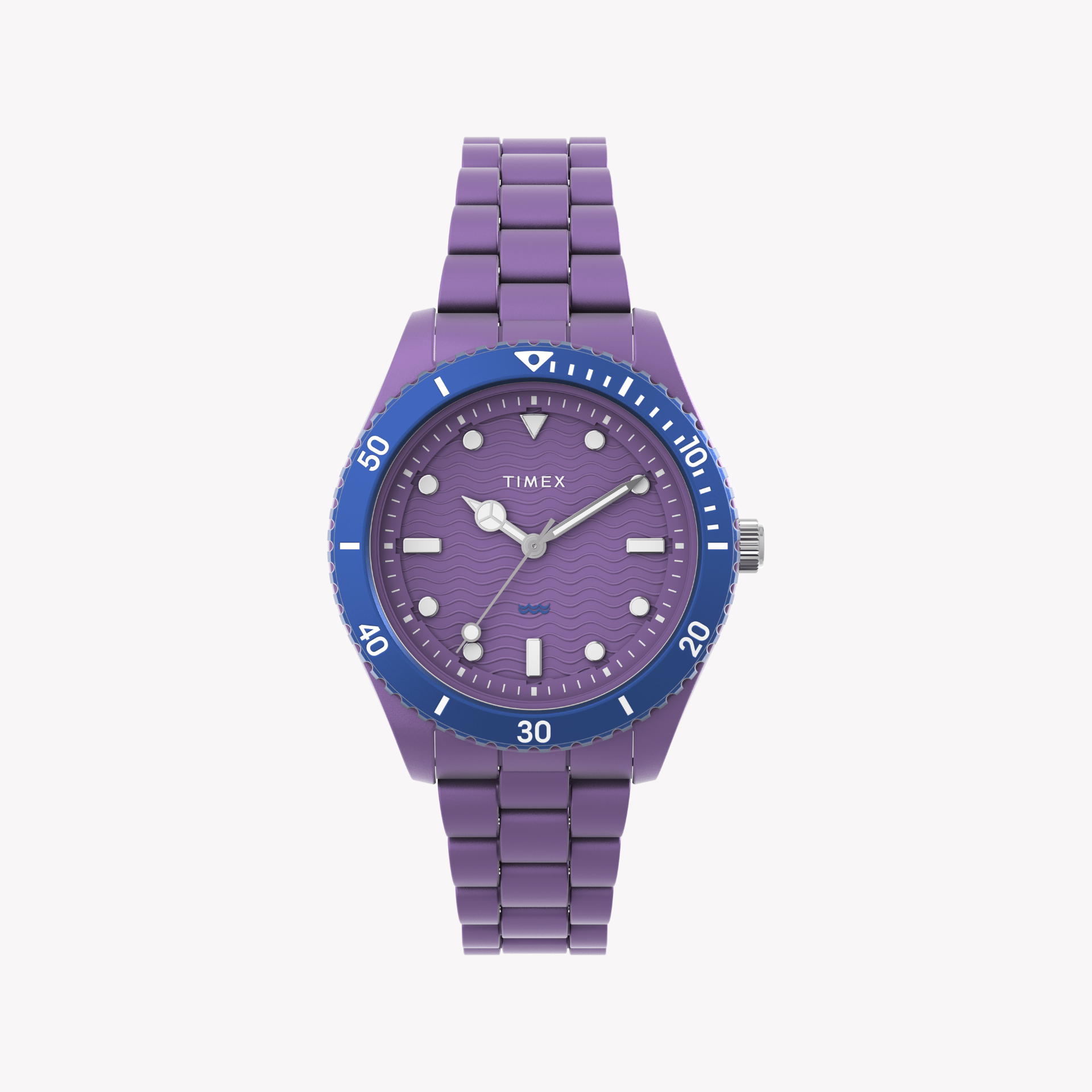 Embrace a bold step towards sustainability with the TIMEX TW2Y04800, a vibrant women’s watch designed for the eco-conscious fashionista. Its all-purple ensemble offers a striking look, while the unique composition of Tide ocean plastic underscores your commitment to the planet.