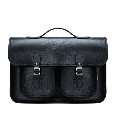 Twin Pocket Executive Handmade Leather Satchel – Black