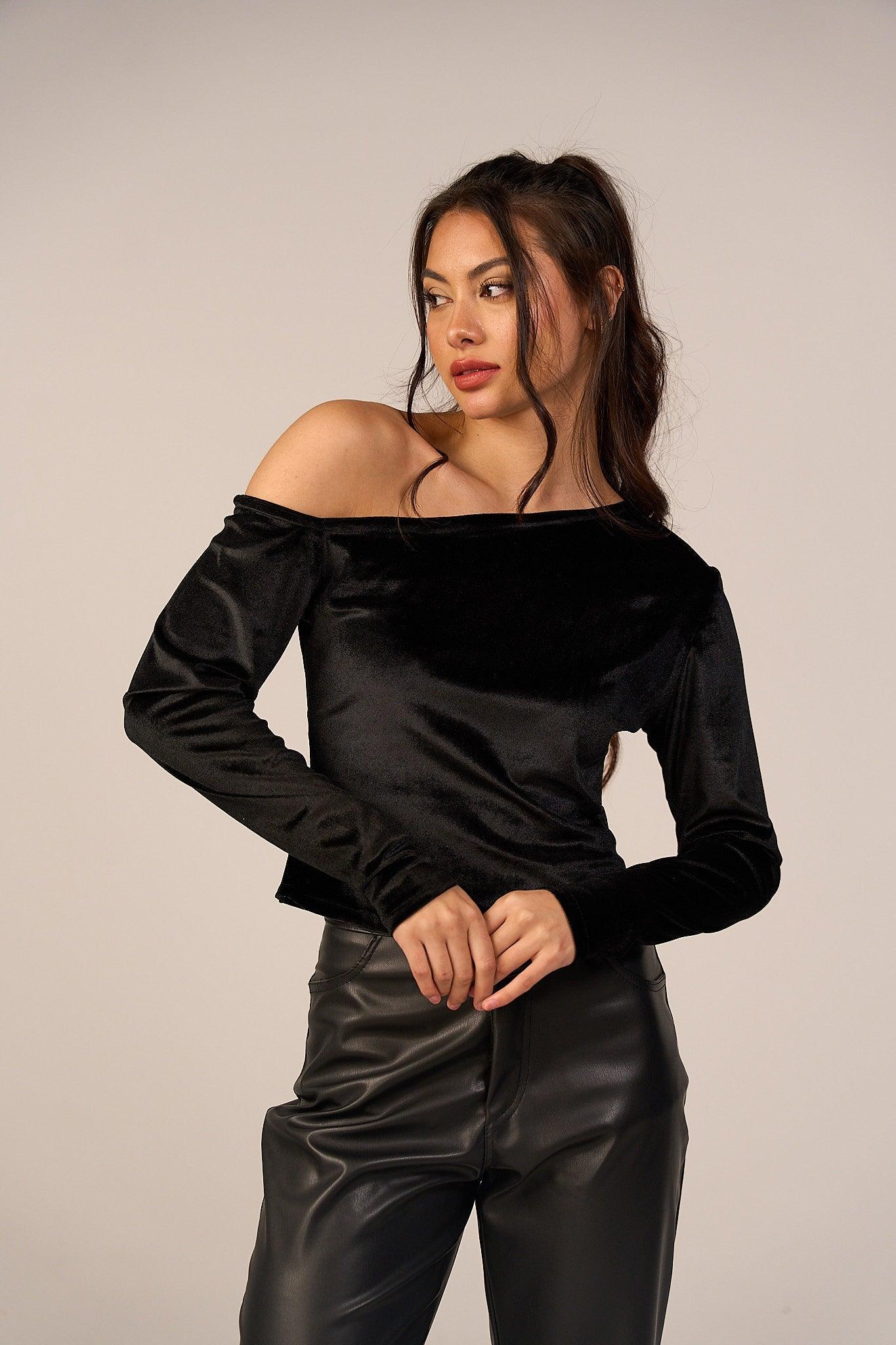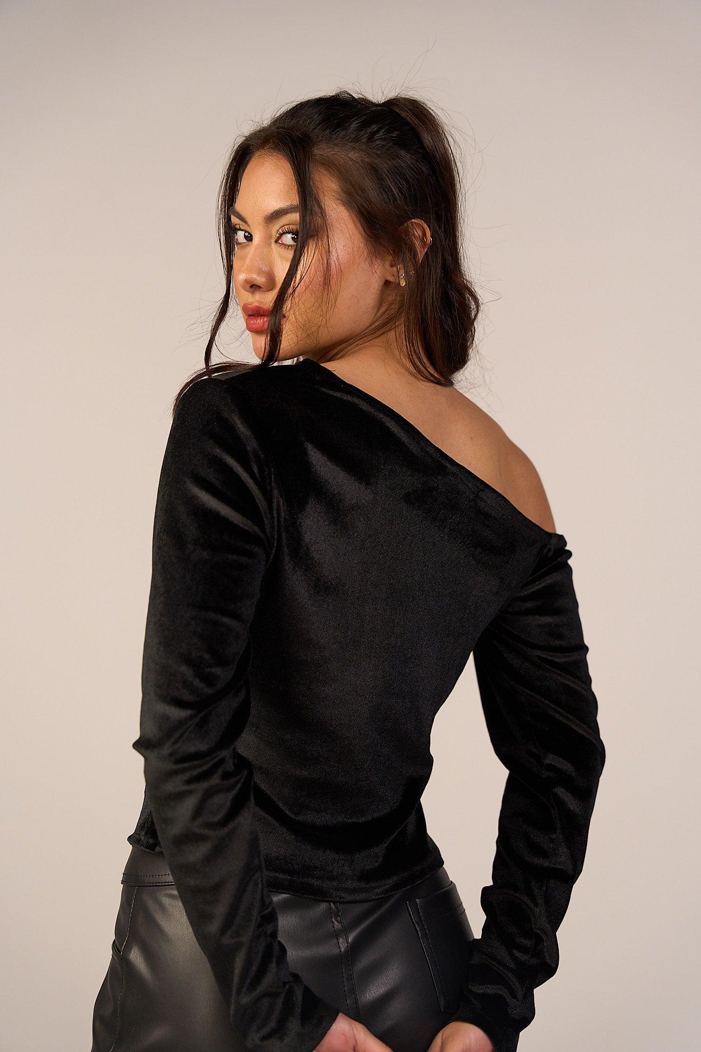 Bring a dash of glamour to your style rotation—add this must-have Velvet One Off-Shoulder Top to your cart and shine wherever you go!