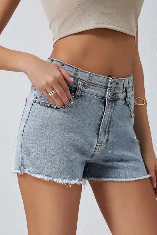 - Buttoned high waist shorts provide a well-covered comfortable daily wear