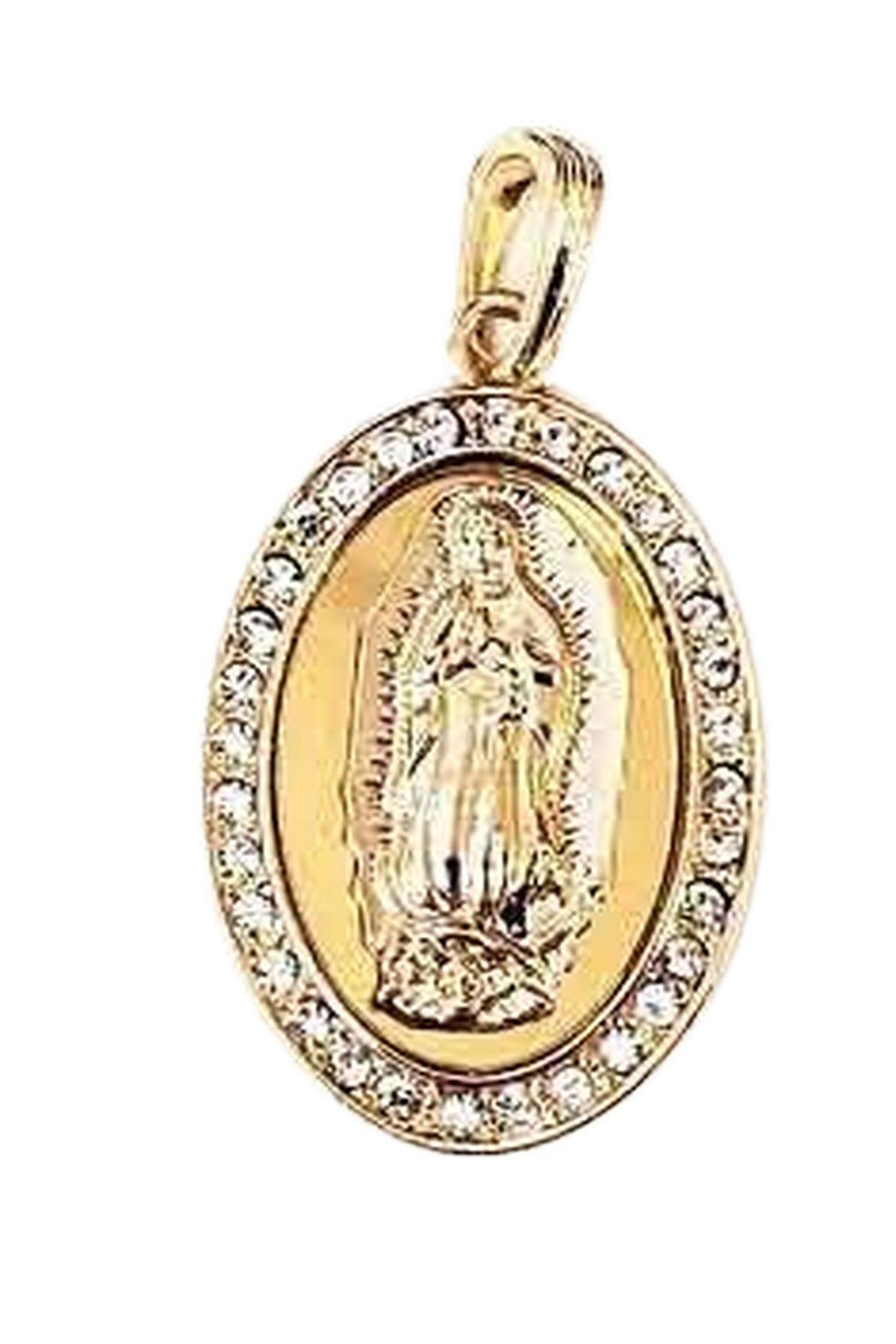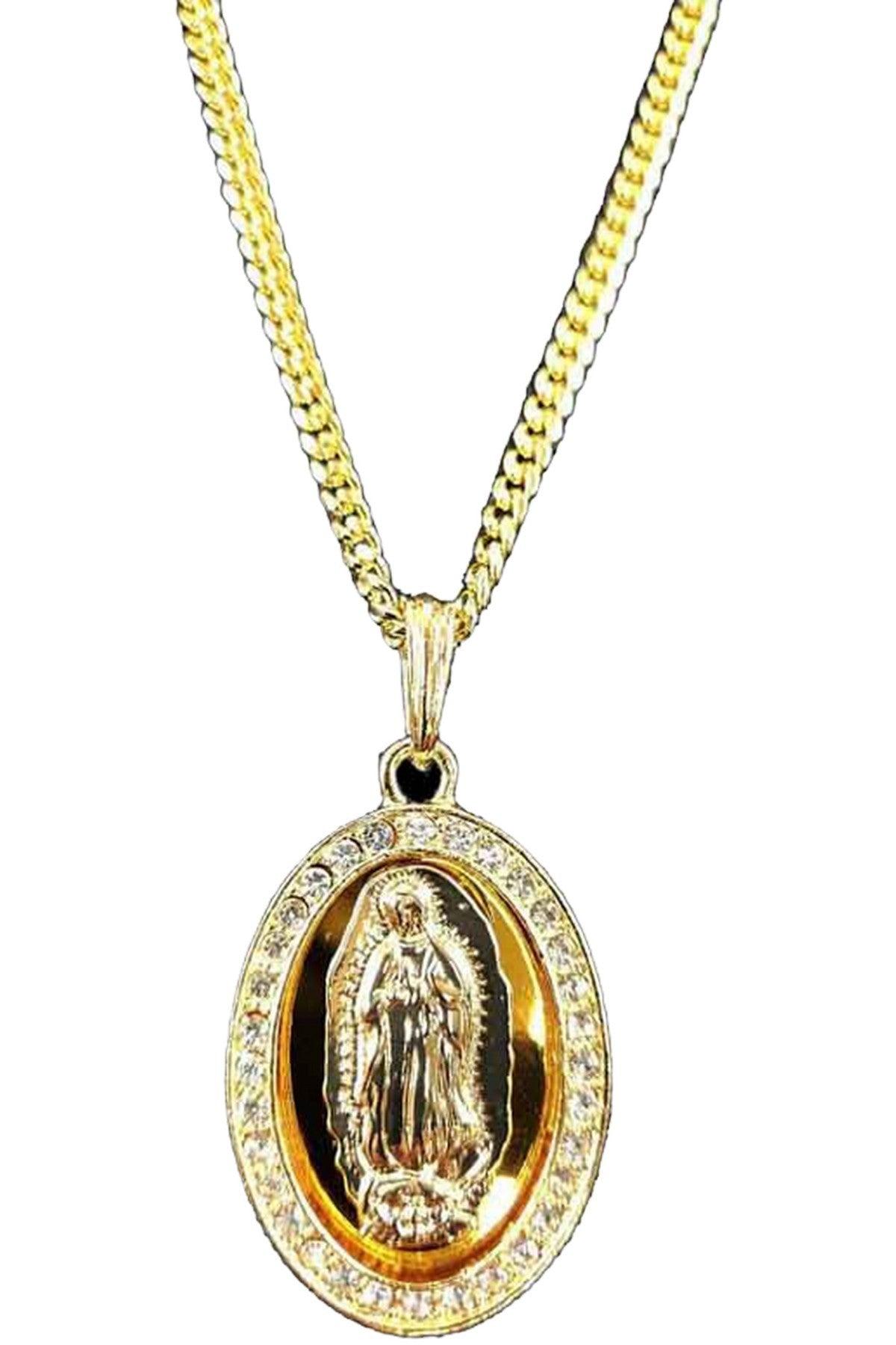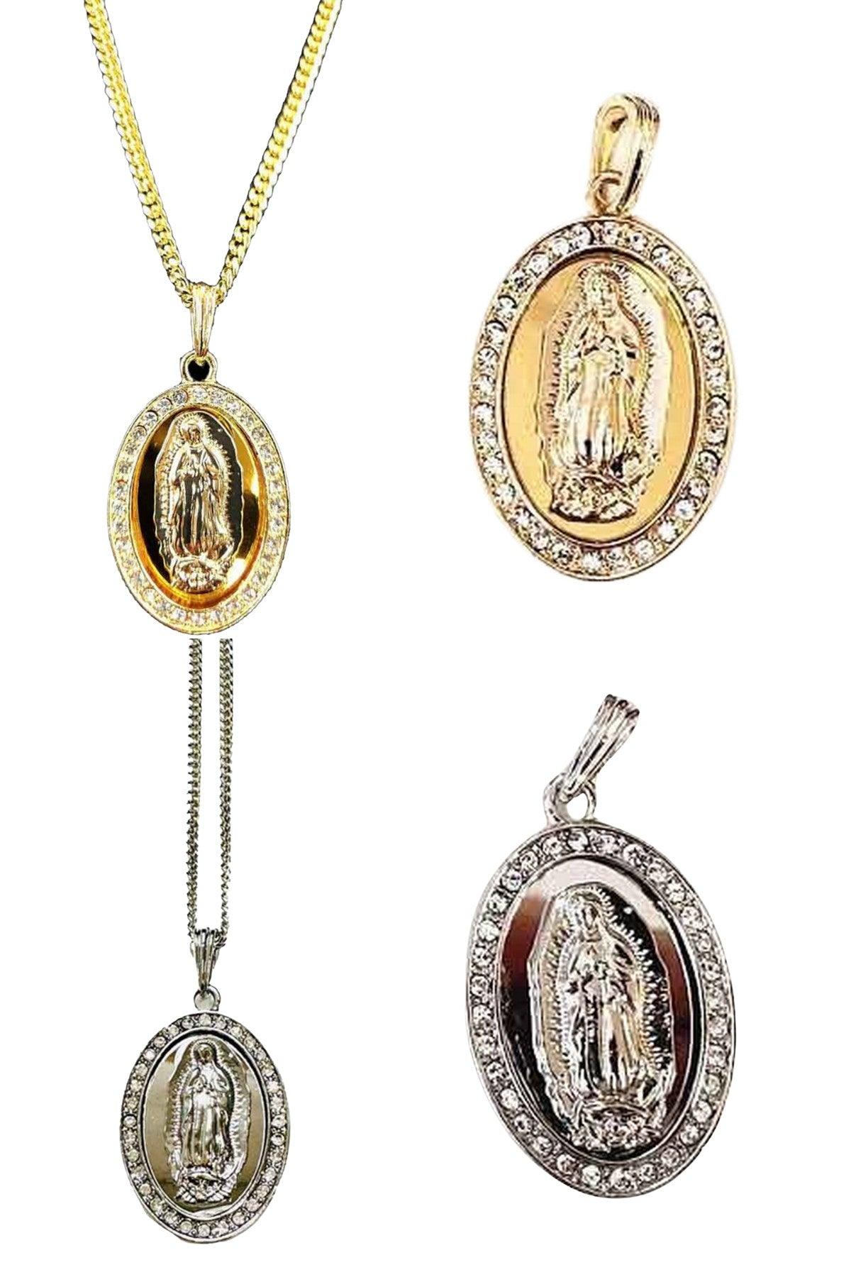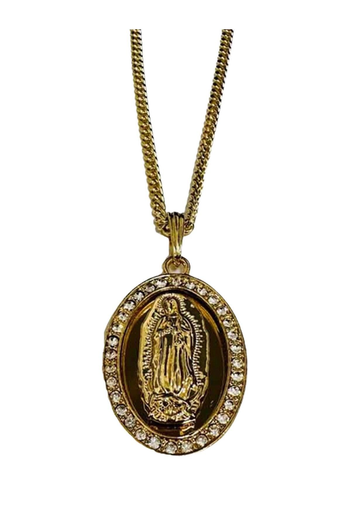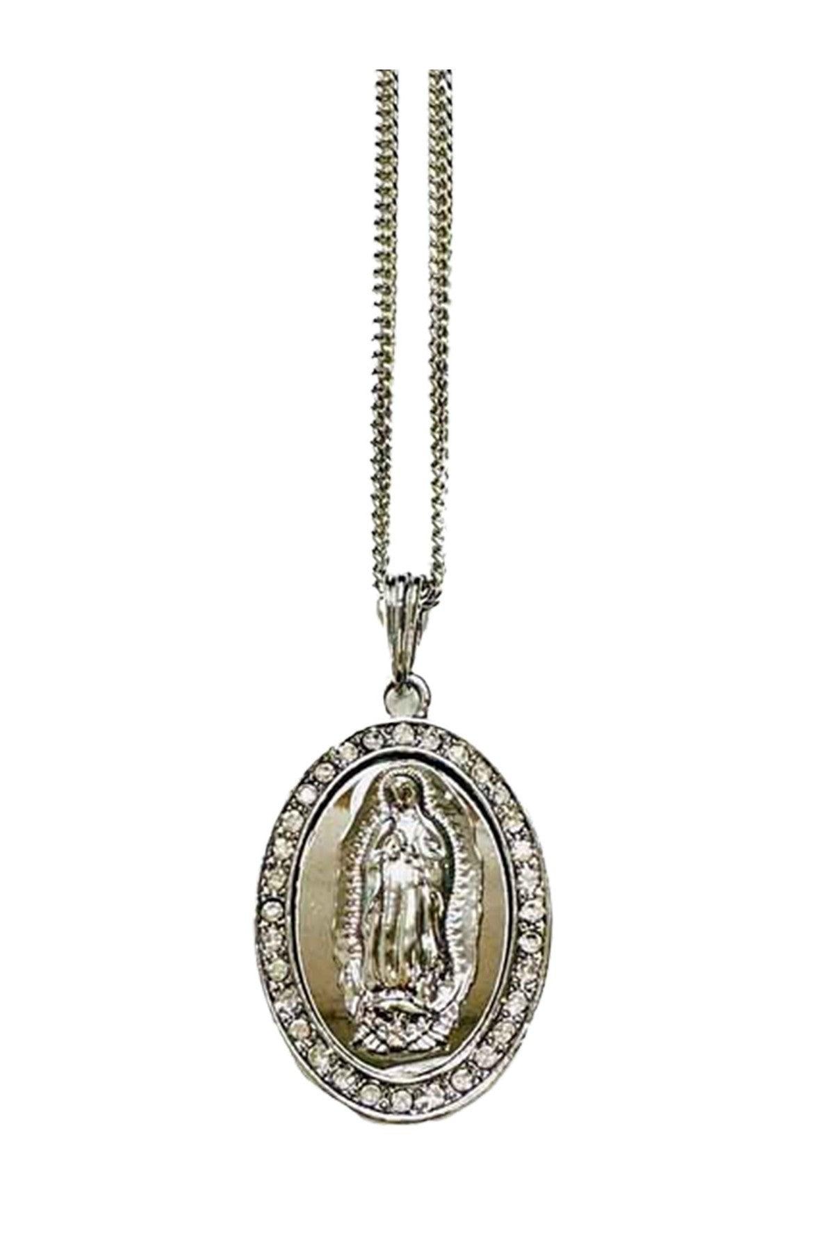 CRYSTAL VIRGEN OF GUADALUPE MEDAL PENDANT NECKLACE
