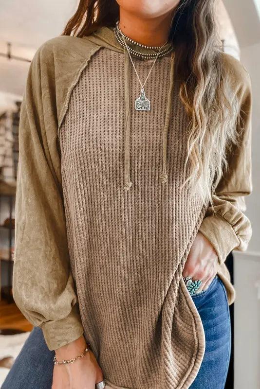 Waffle Knit Drawstring Hoodie – Exposed Seam